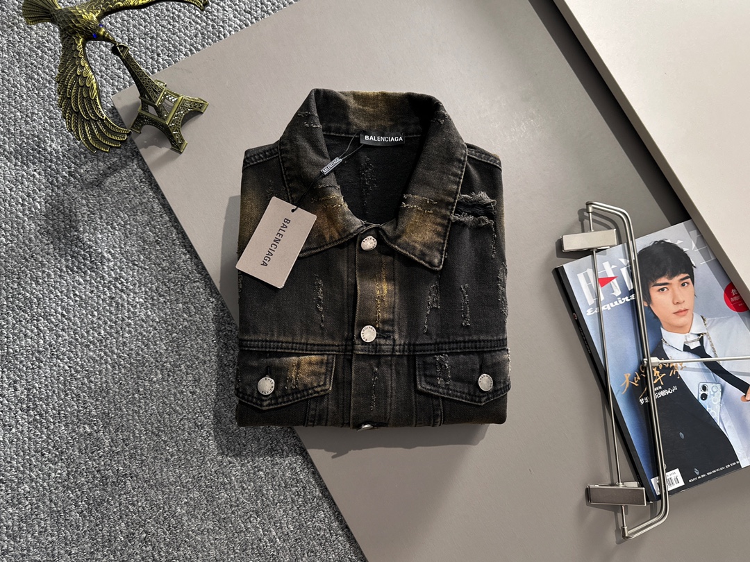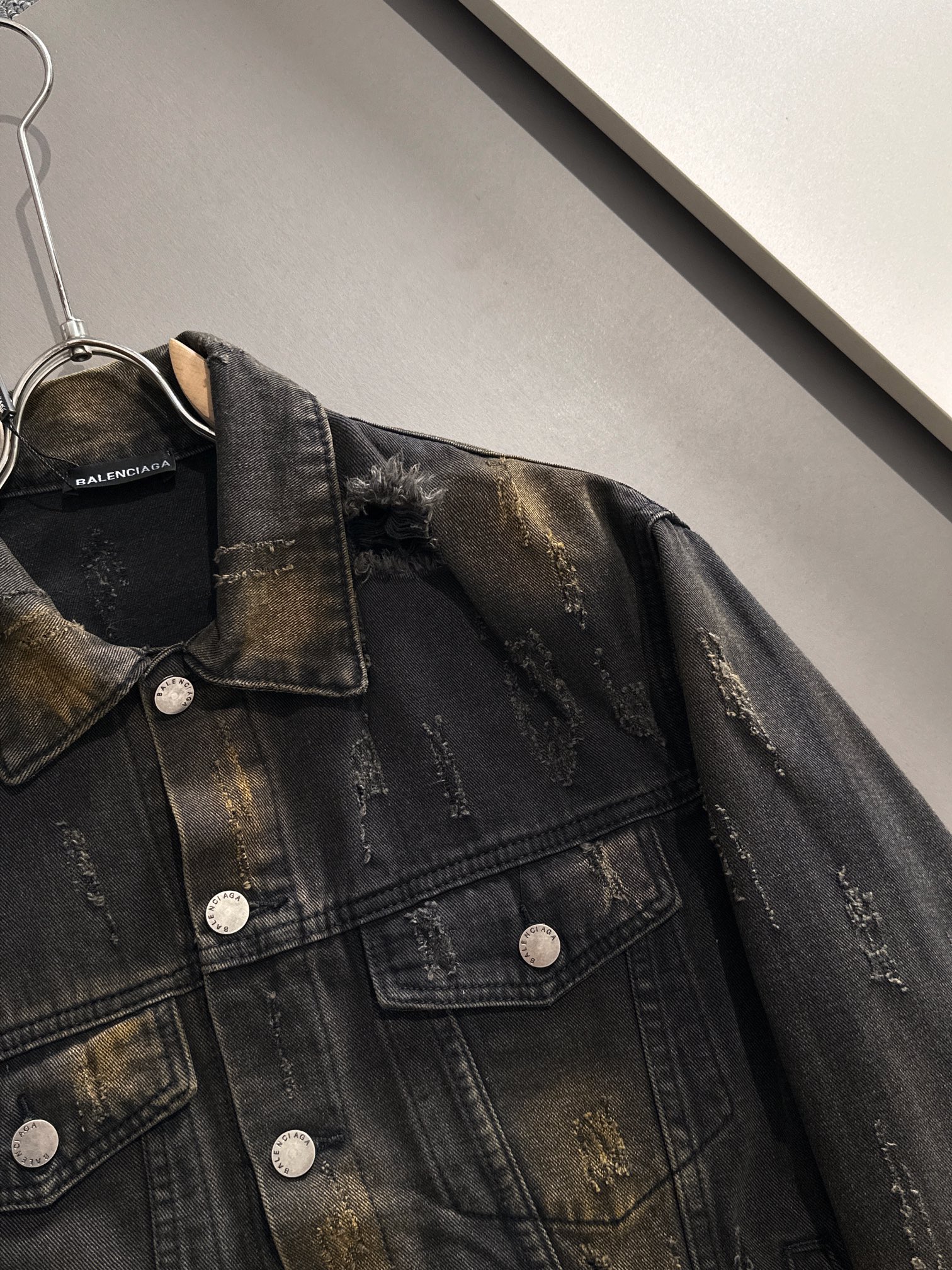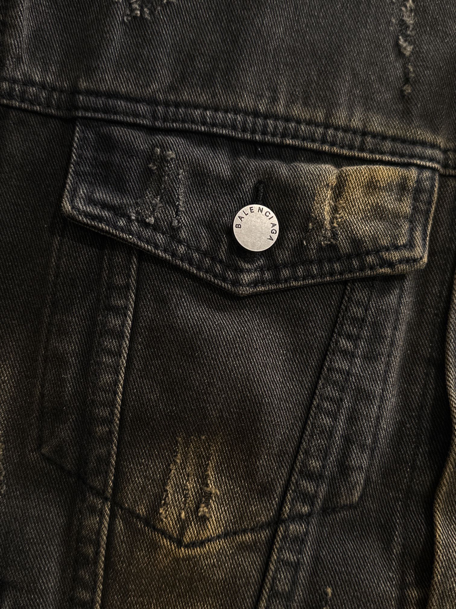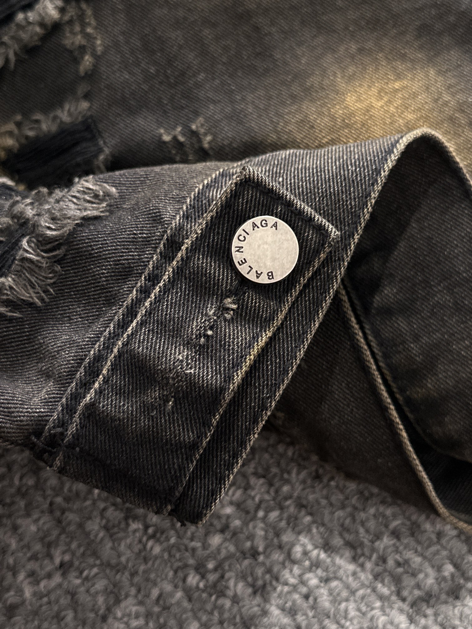 This Balenciaga denim jacket, straight from the 2025 runway, is a statement piece for any fashion enthusiast.