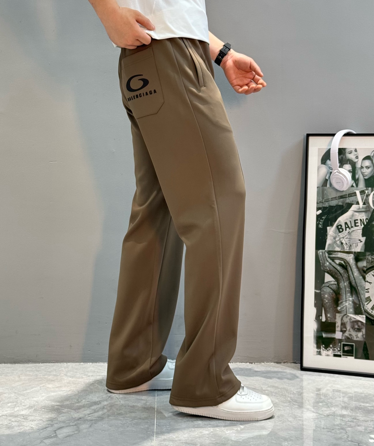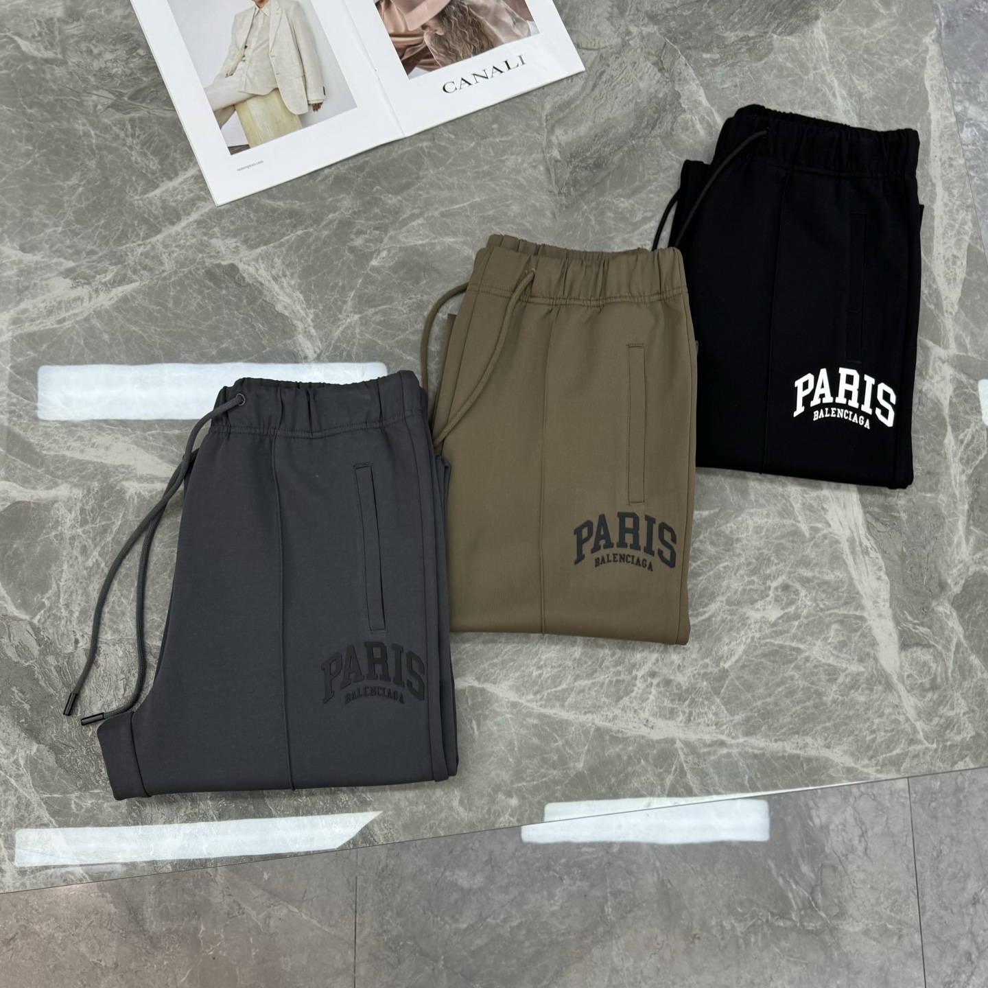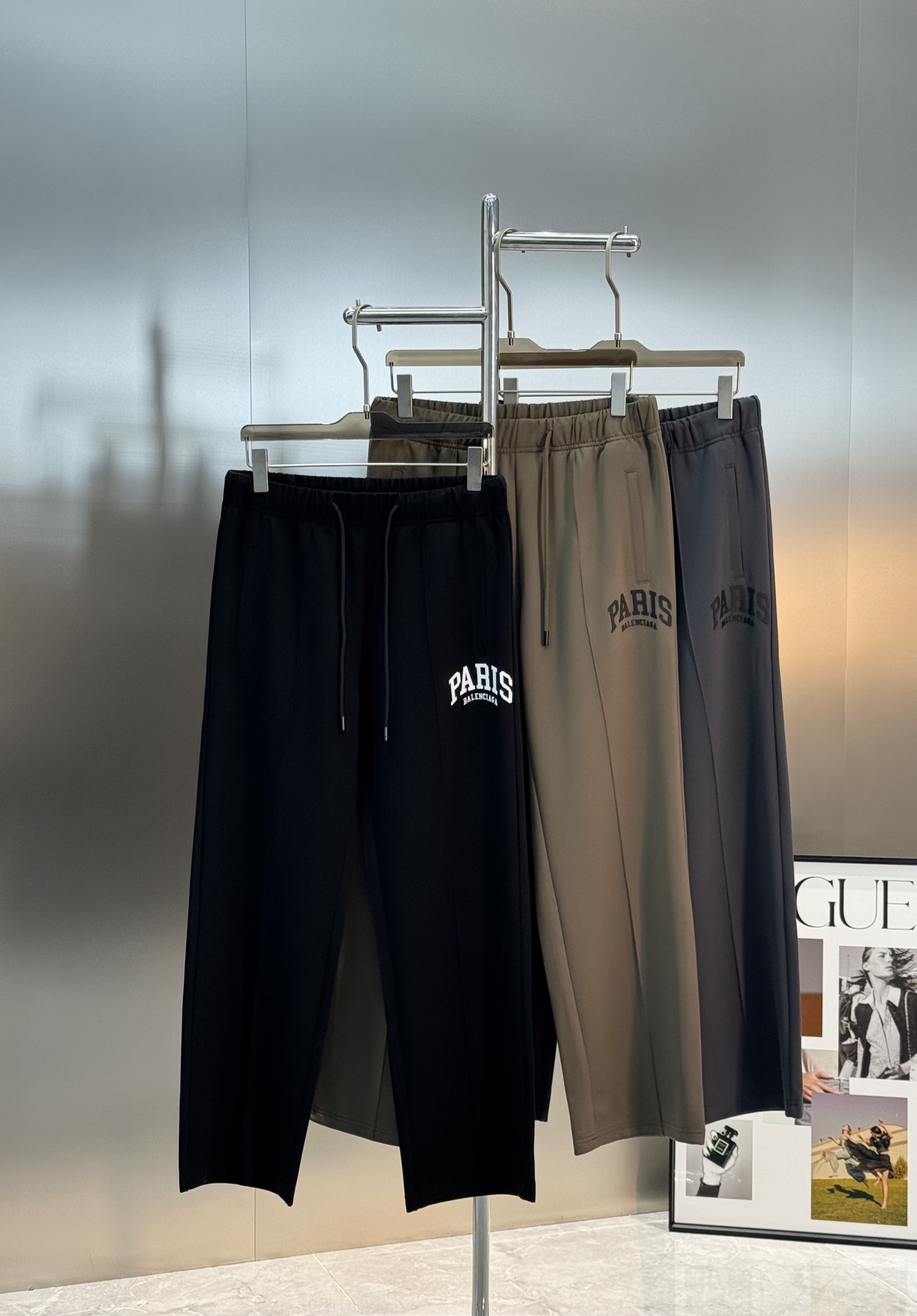 Tags: Balenciaga Style Pants, Fashionable Menswear, Men's Casual Trousers, Paris Lettering Pants, Relaxed Fit Trousers, Straight Leg Pants