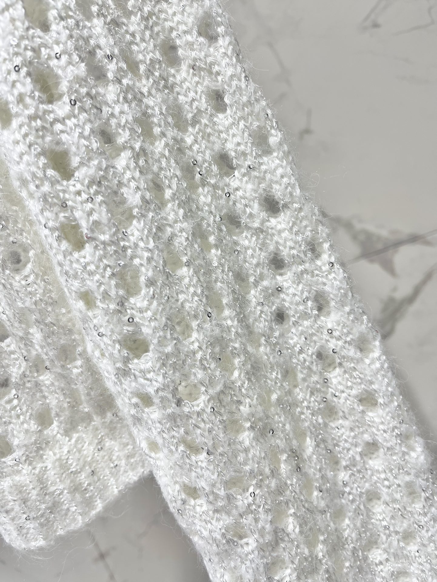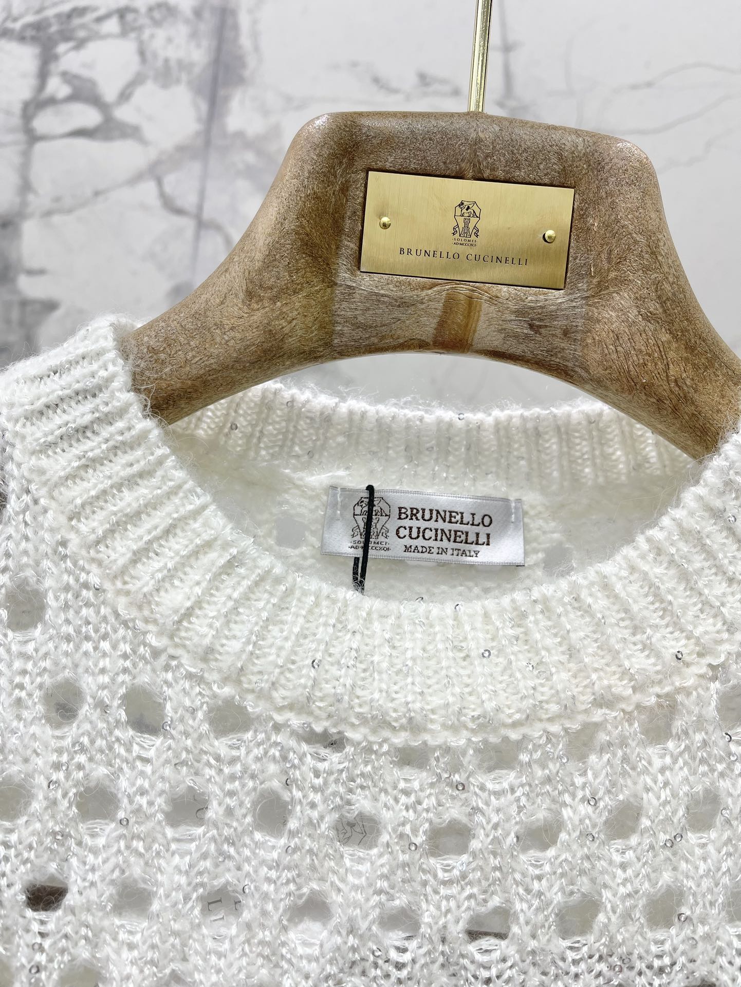 This Brunello Cucinelli knit top is the perfect addition to your wardrobe, offering a blend of luxury and comfort. With its subtle silver thread detailing and flattering fit, it's designed to make you feel confident and stylish.