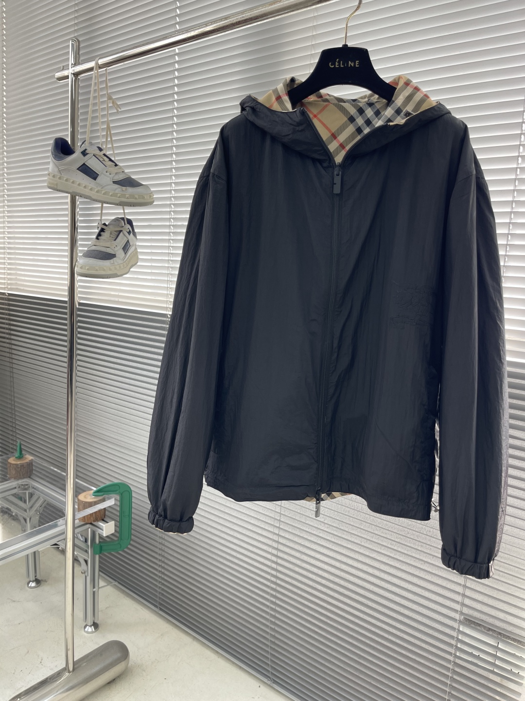 Tags: Burberry Hooded Jacket, Check Pattern Jacket, Designer Outerwear, Reversible jacket, Tech Fabric Jacket, Women's Fashion Jacket