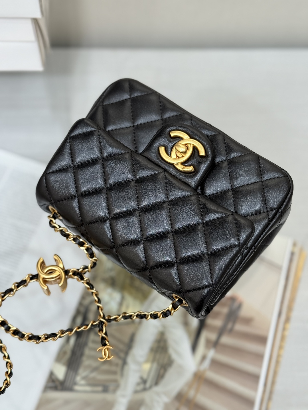 - Features the iconic Chanel diamond quilting