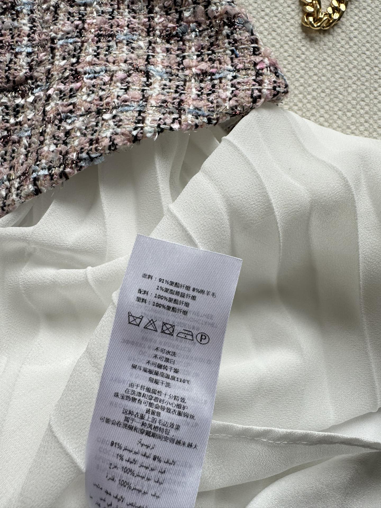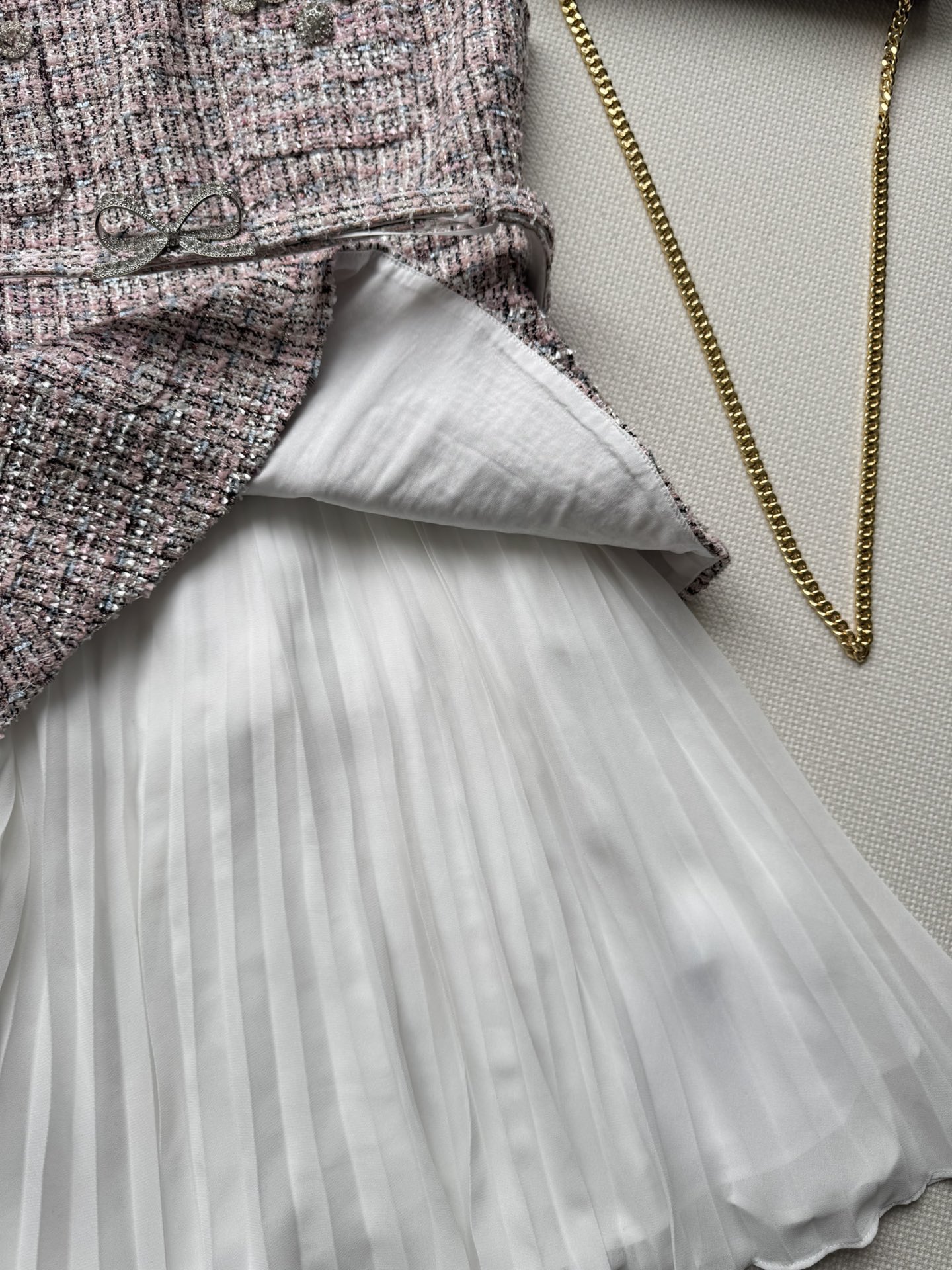Material: High-quality tweed and pleated fabric