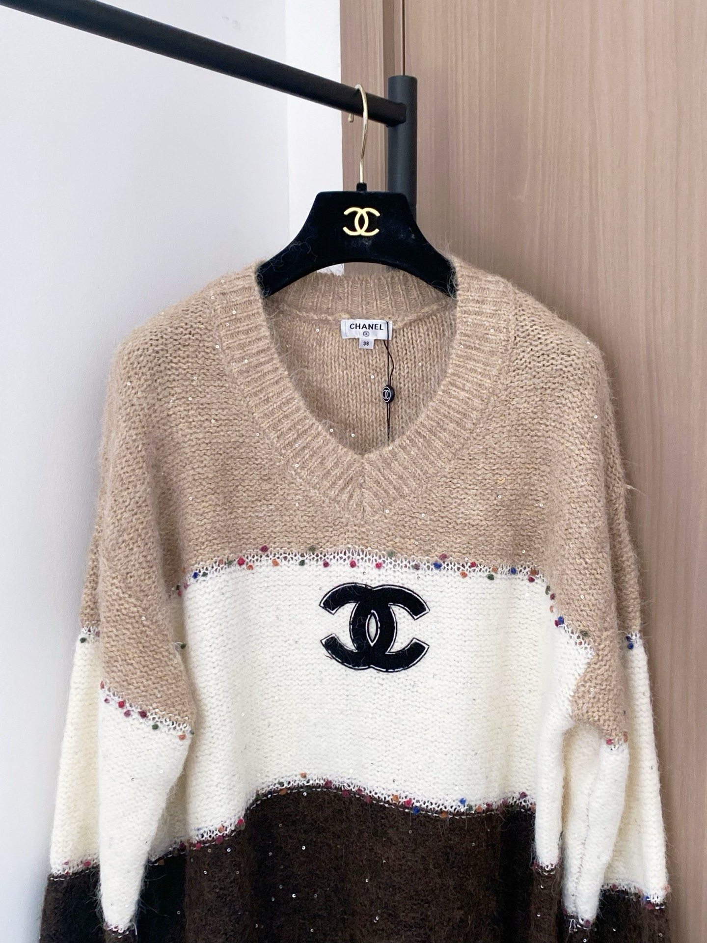 This Chanel sweater is a luxurious addition to any wardrobe, seamlessly blending comfort and high fashion.