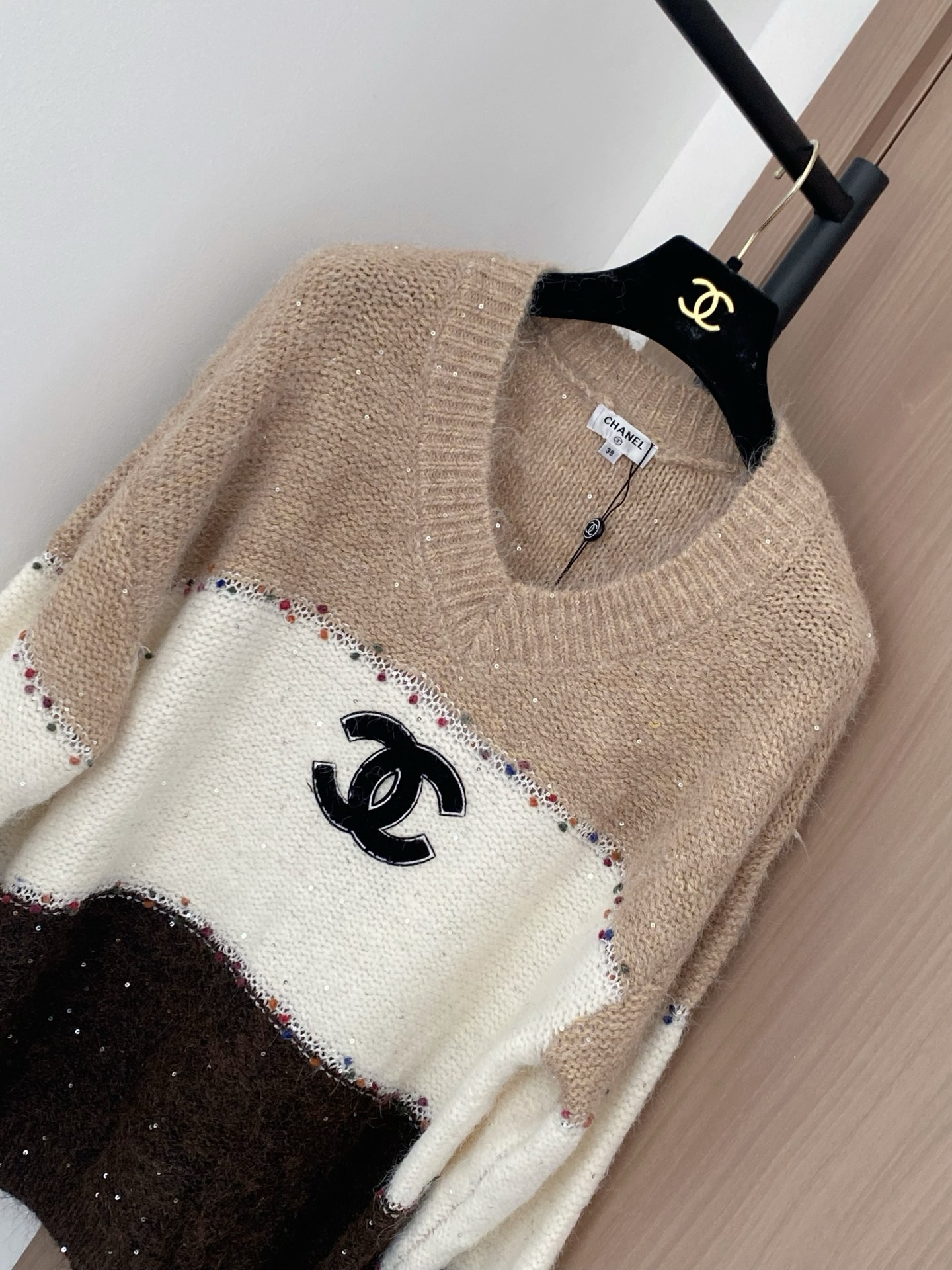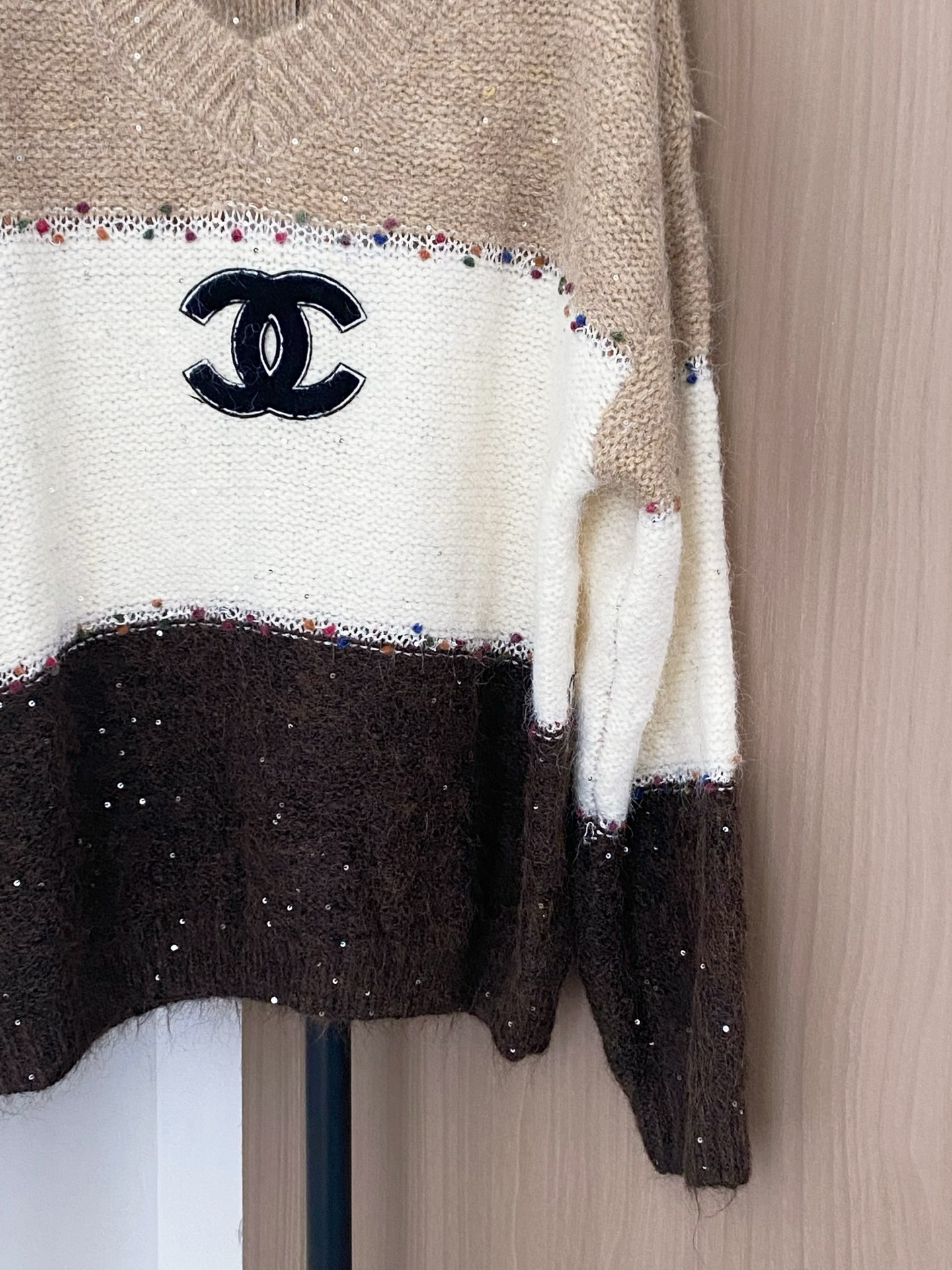 Tags: Chanel Sweater, Designer Sweater, Elegant Top, Long Sleeve Sweater, V Neck Sweater, Women's Fashion