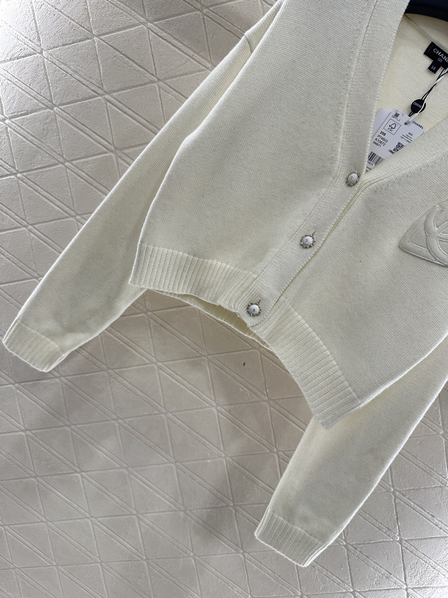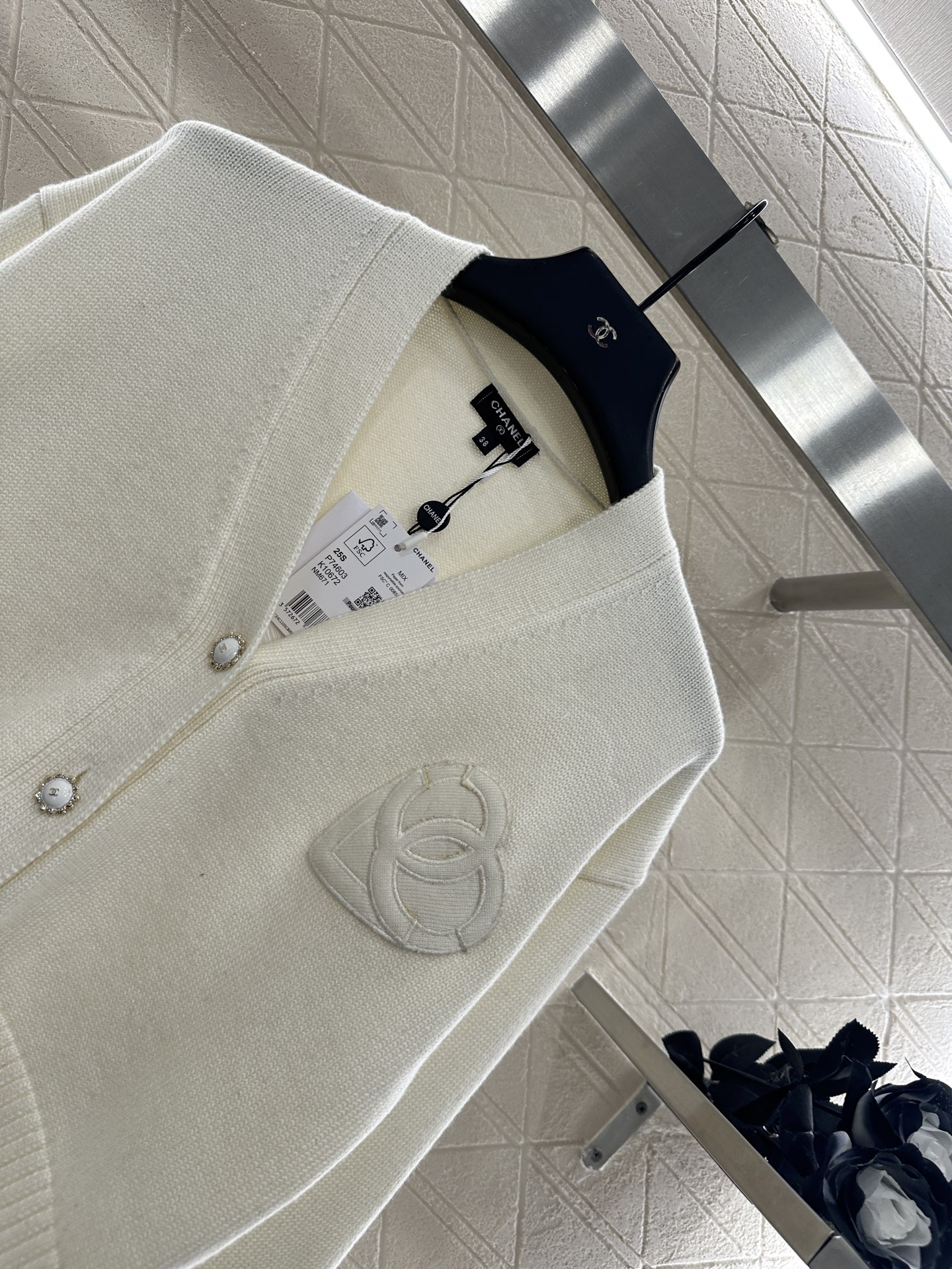 This Chanel knit cardigan is a luxurious and stylish piece that combines classic design with contemporary details.