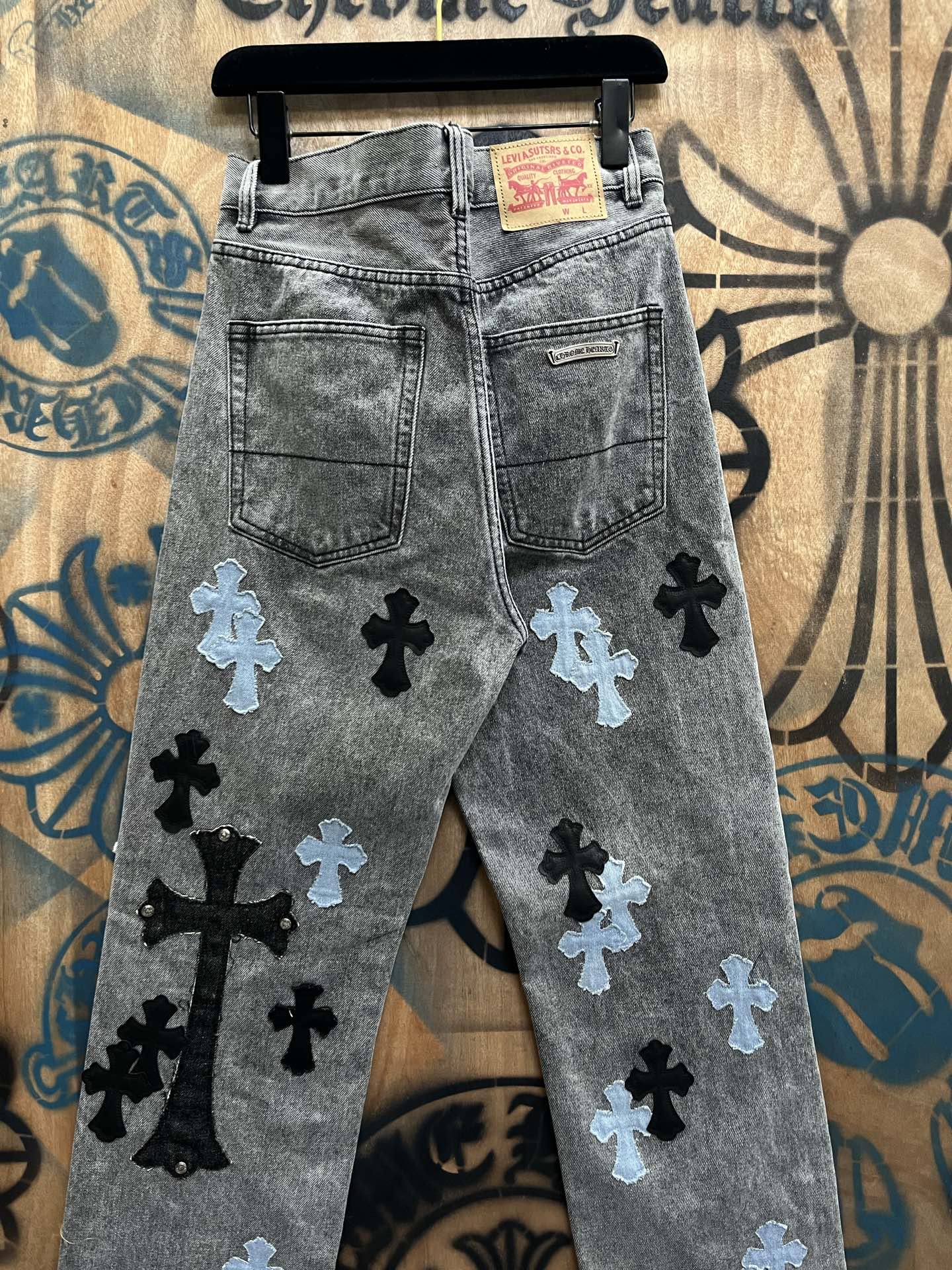 Experience the unparalleled craftsmanship and unique style of Chrome Hearts with these limited edition jeans. A true statement piece for any fashion enthusiast.