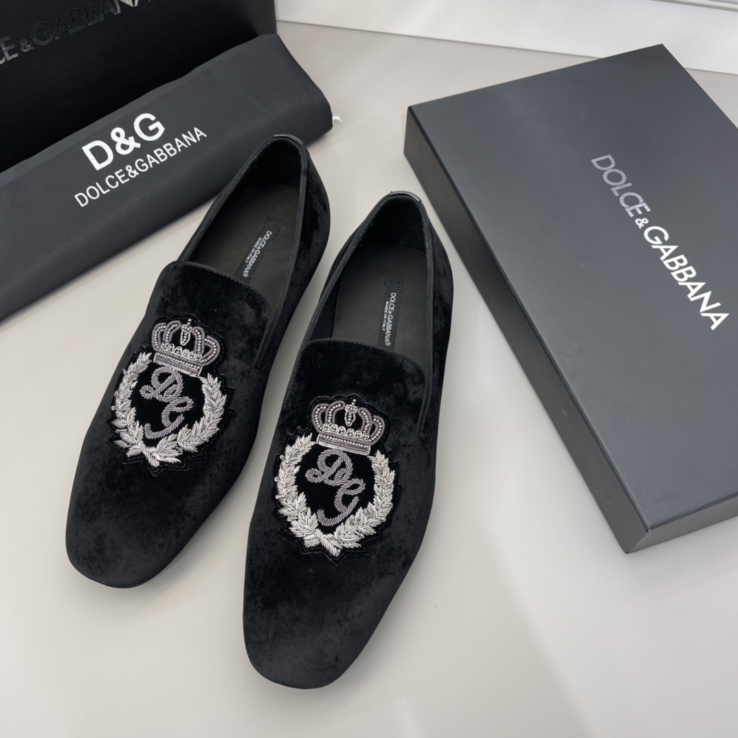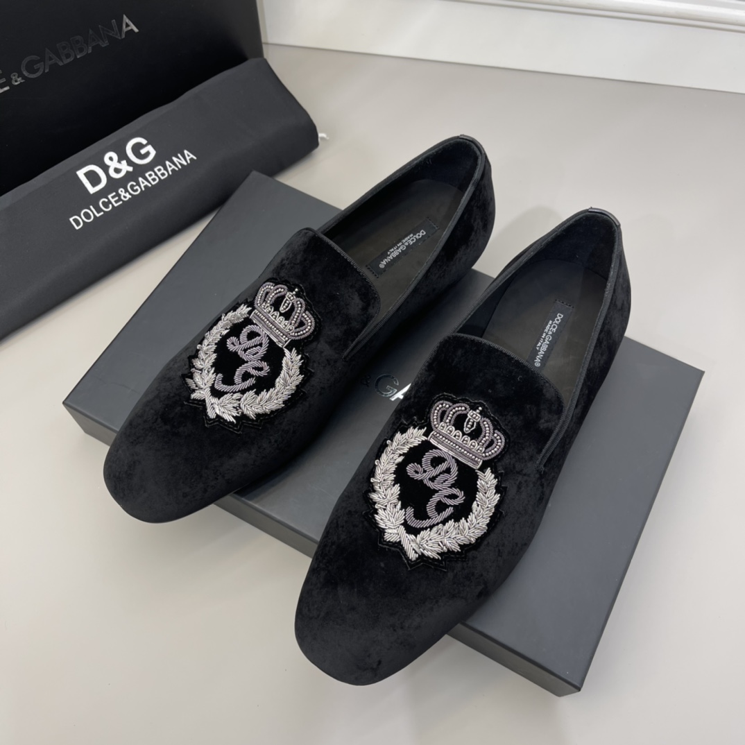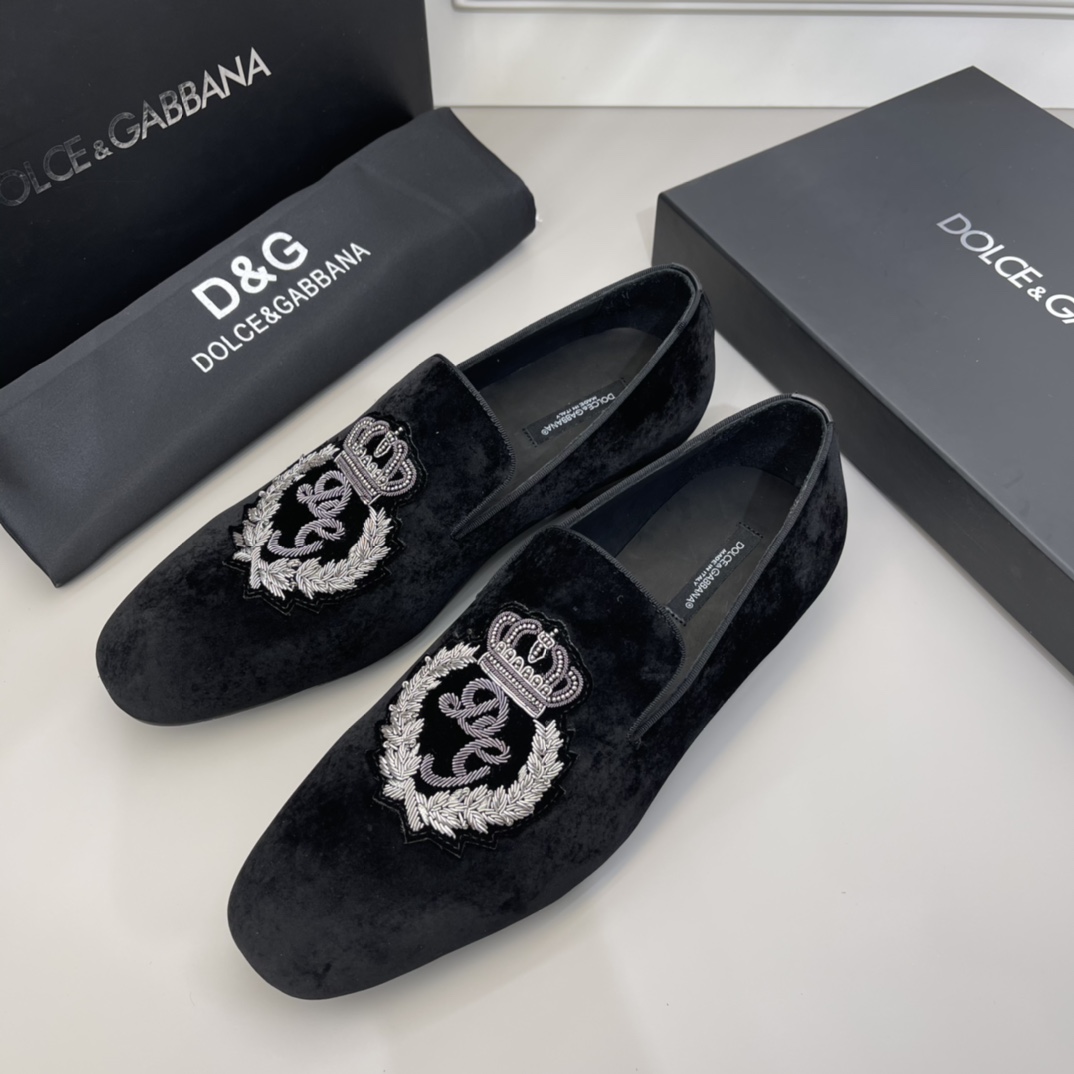 Crafted with precision and an eye for detail, these Dolce & Gabbana velvet loafers are a statement of sophistication and elegance.
