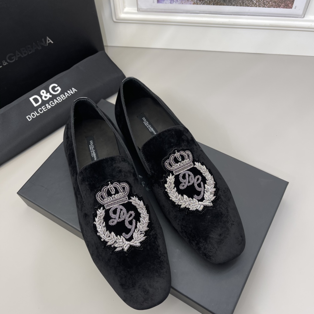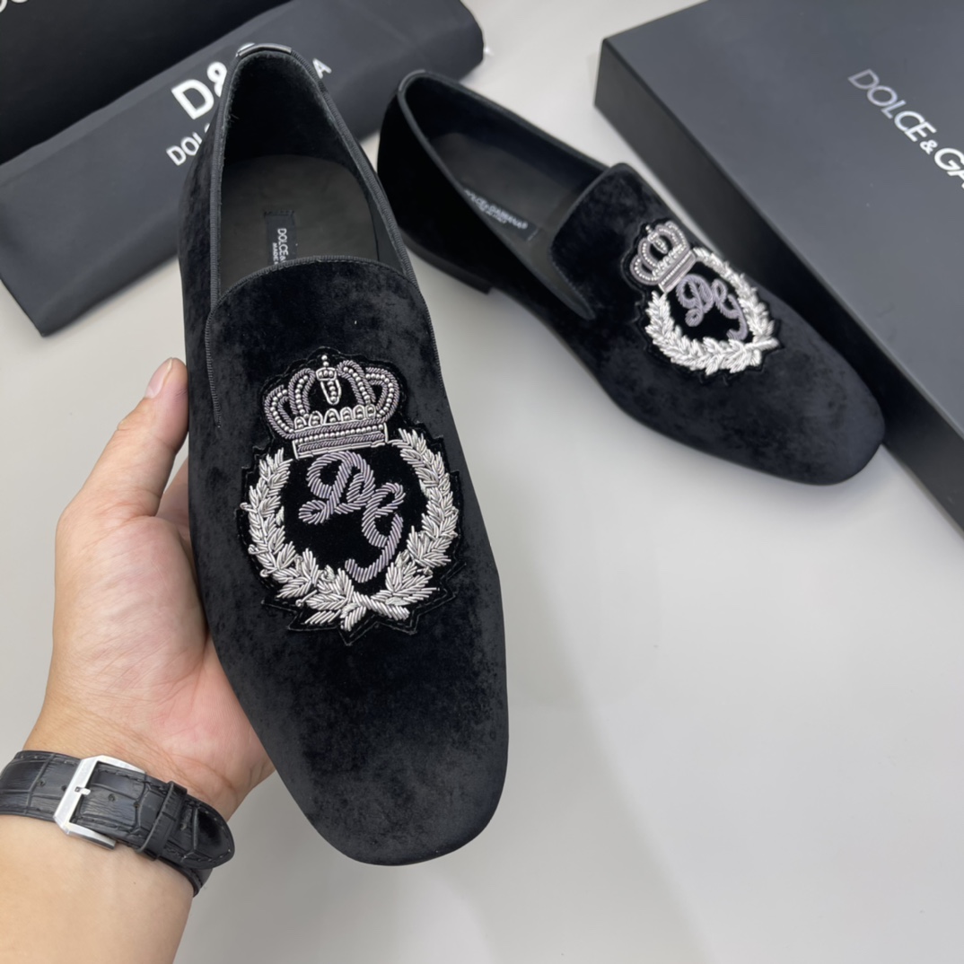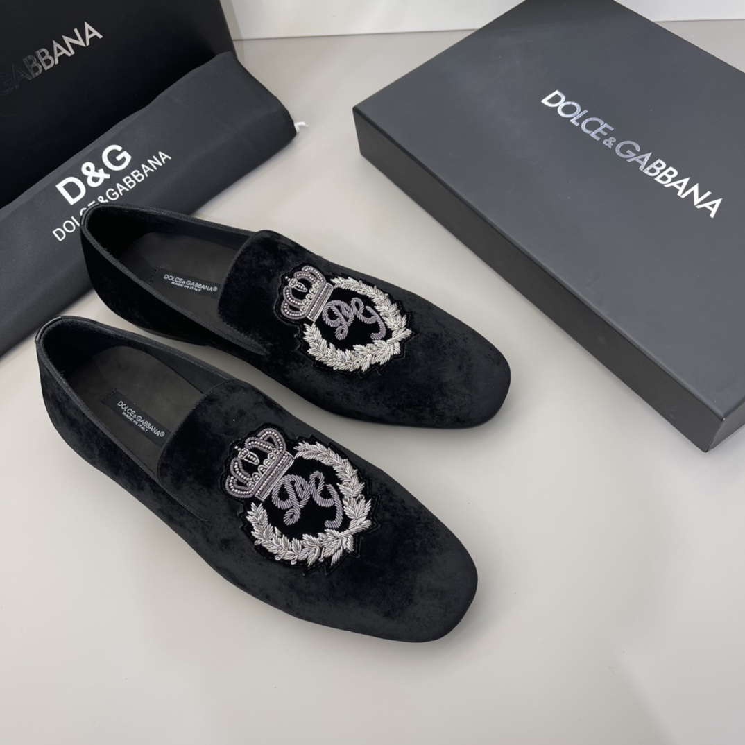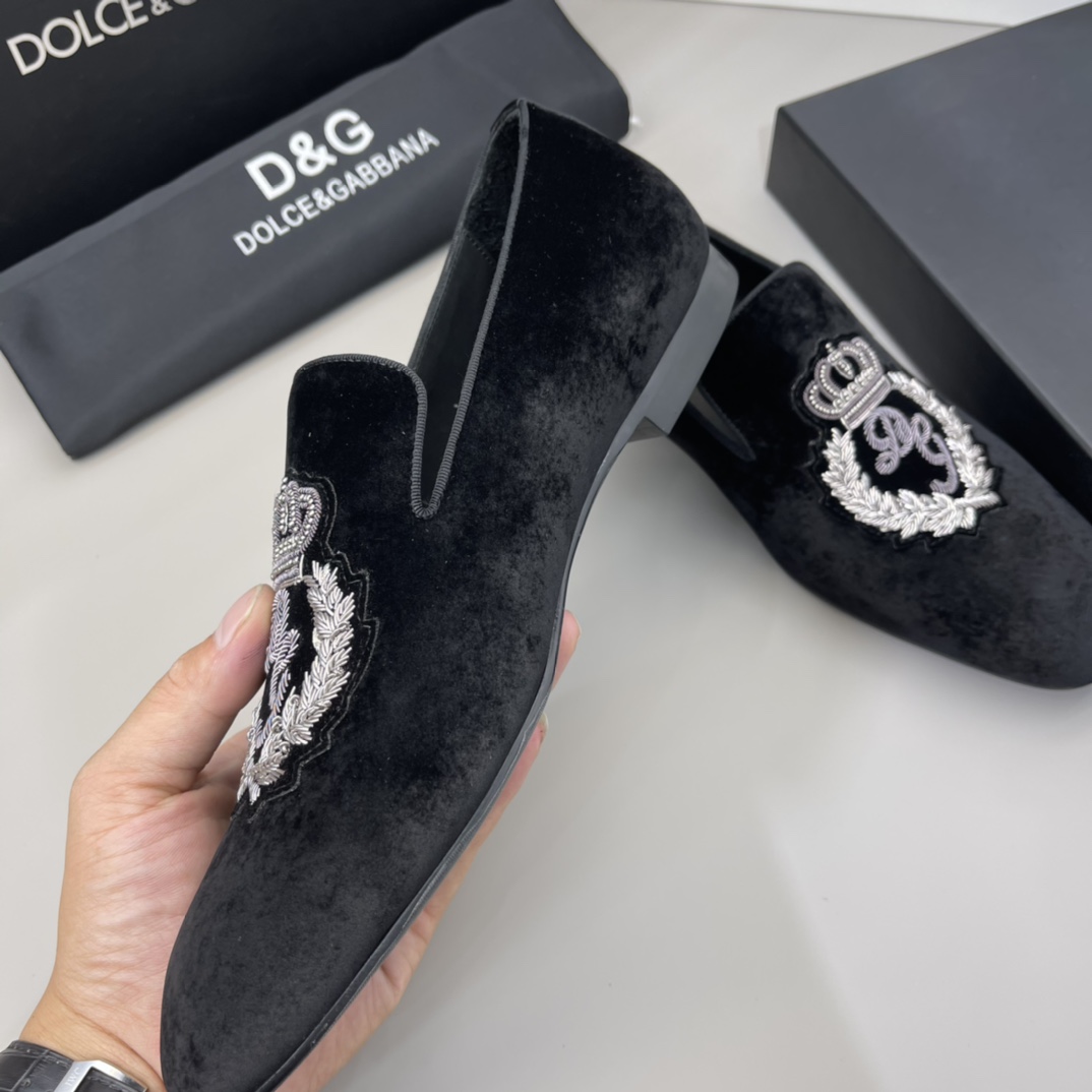 Crafted with precision and an eye for detail, these Dolce & Gabbana velvet loafers are a statement of sophistication and elegance.