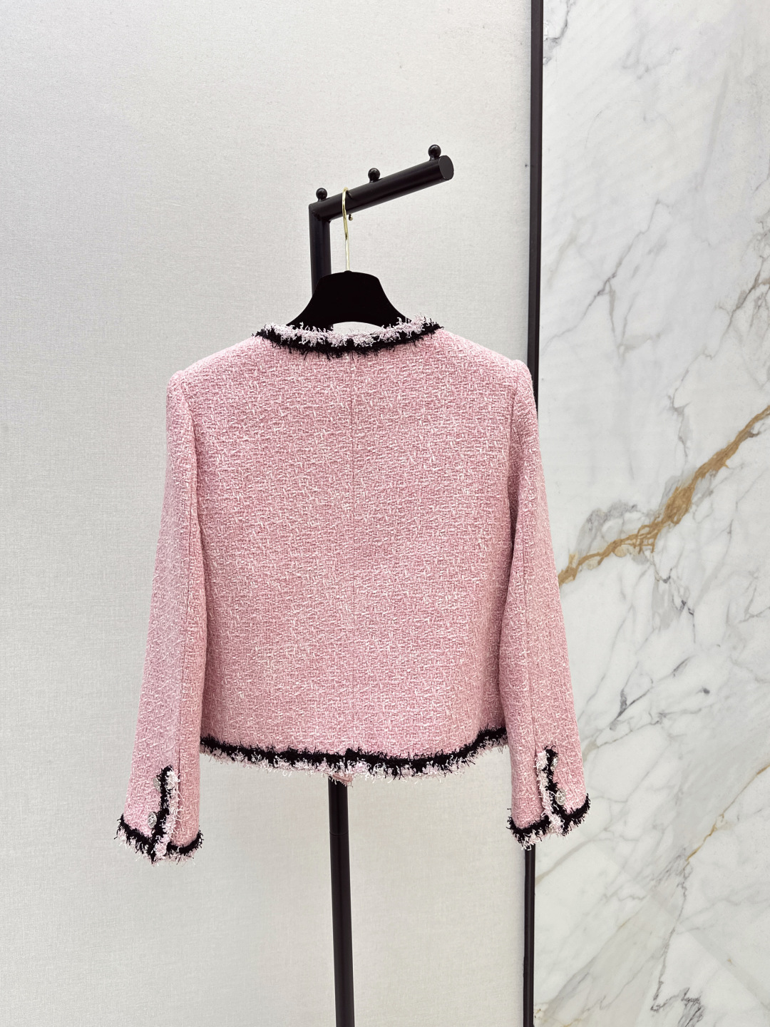 Tags: Braided Trim Jacket, Chanel Style Outerwear, Designer Inspired Jacket, Elegant Women's Jacket, Pink Tweed Jacket, Tweed Jacket Women