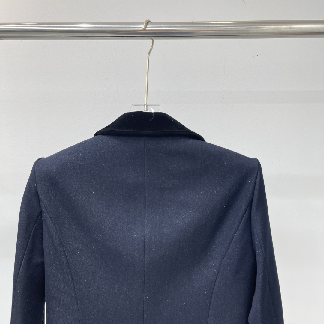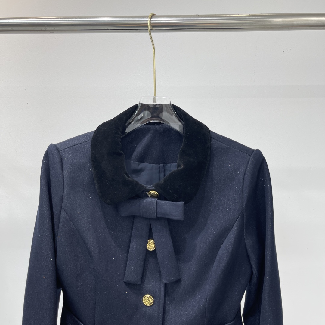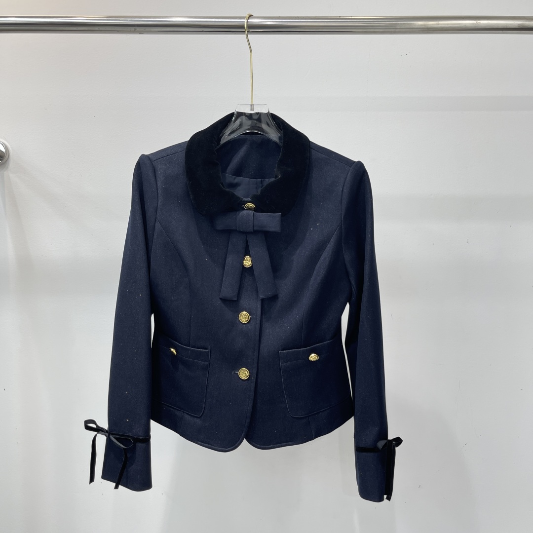 - Tailored Jacket: The jacket features a classic cut with a modern twist, including a unique bow detail that adds a touch of femininity.