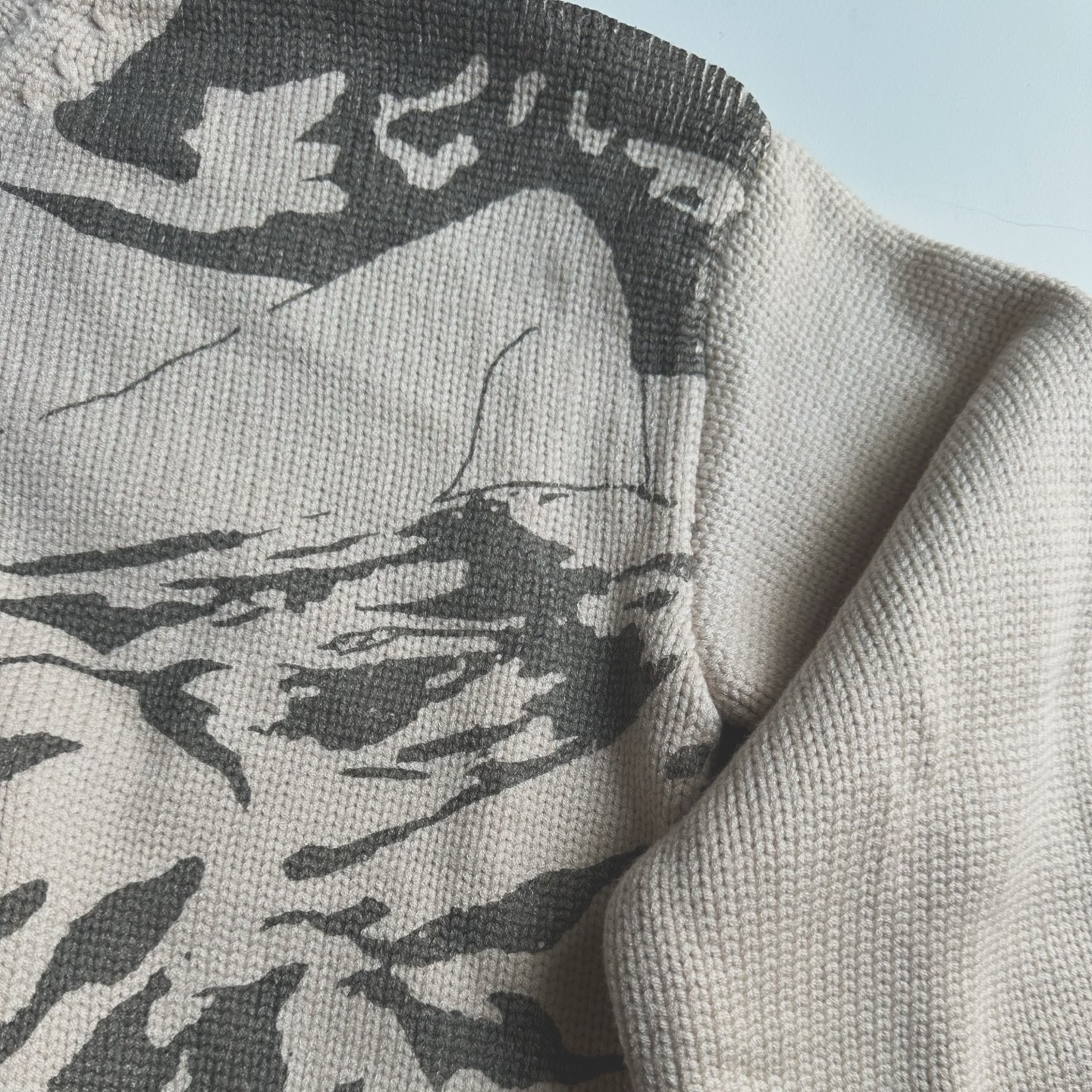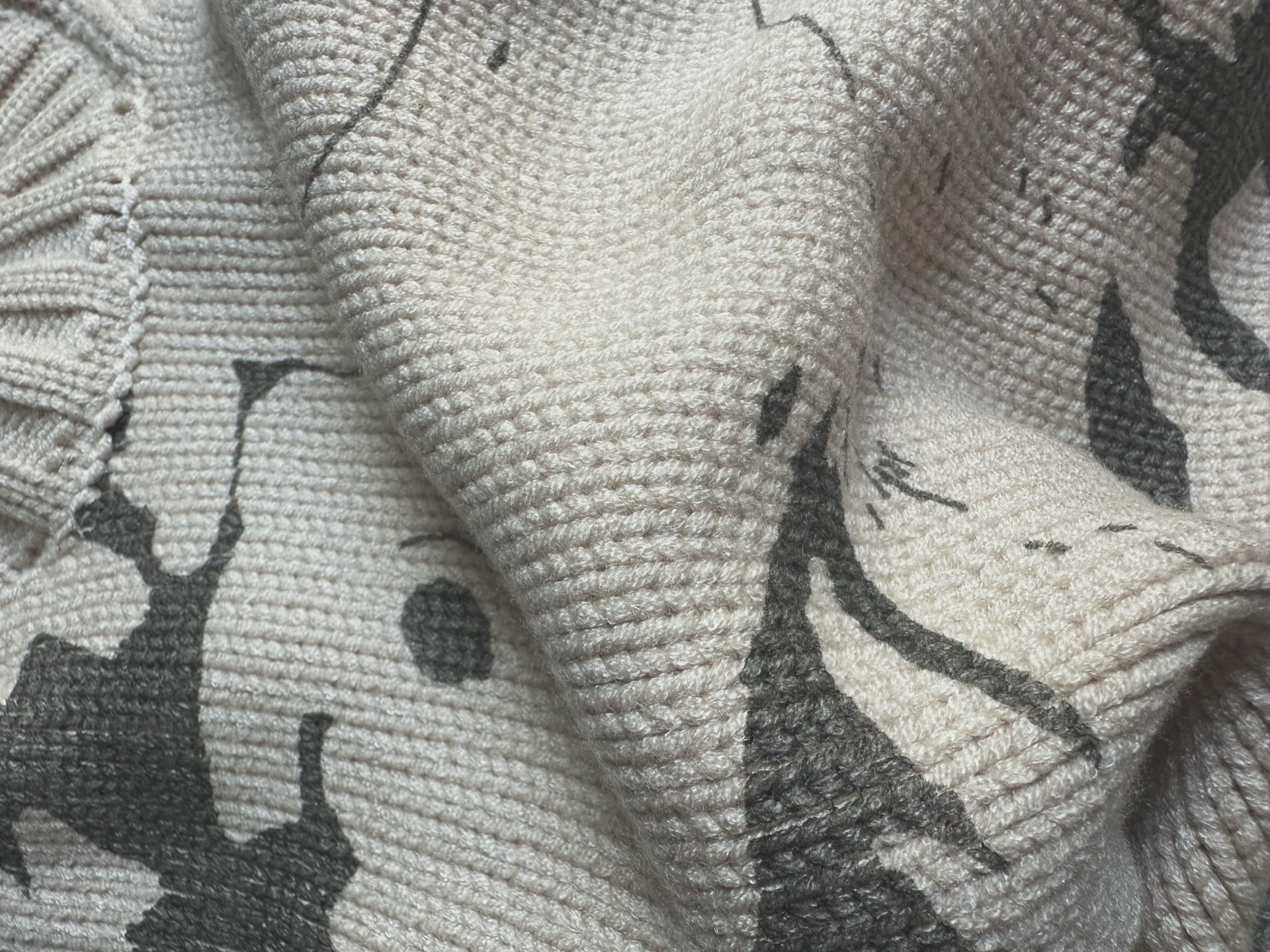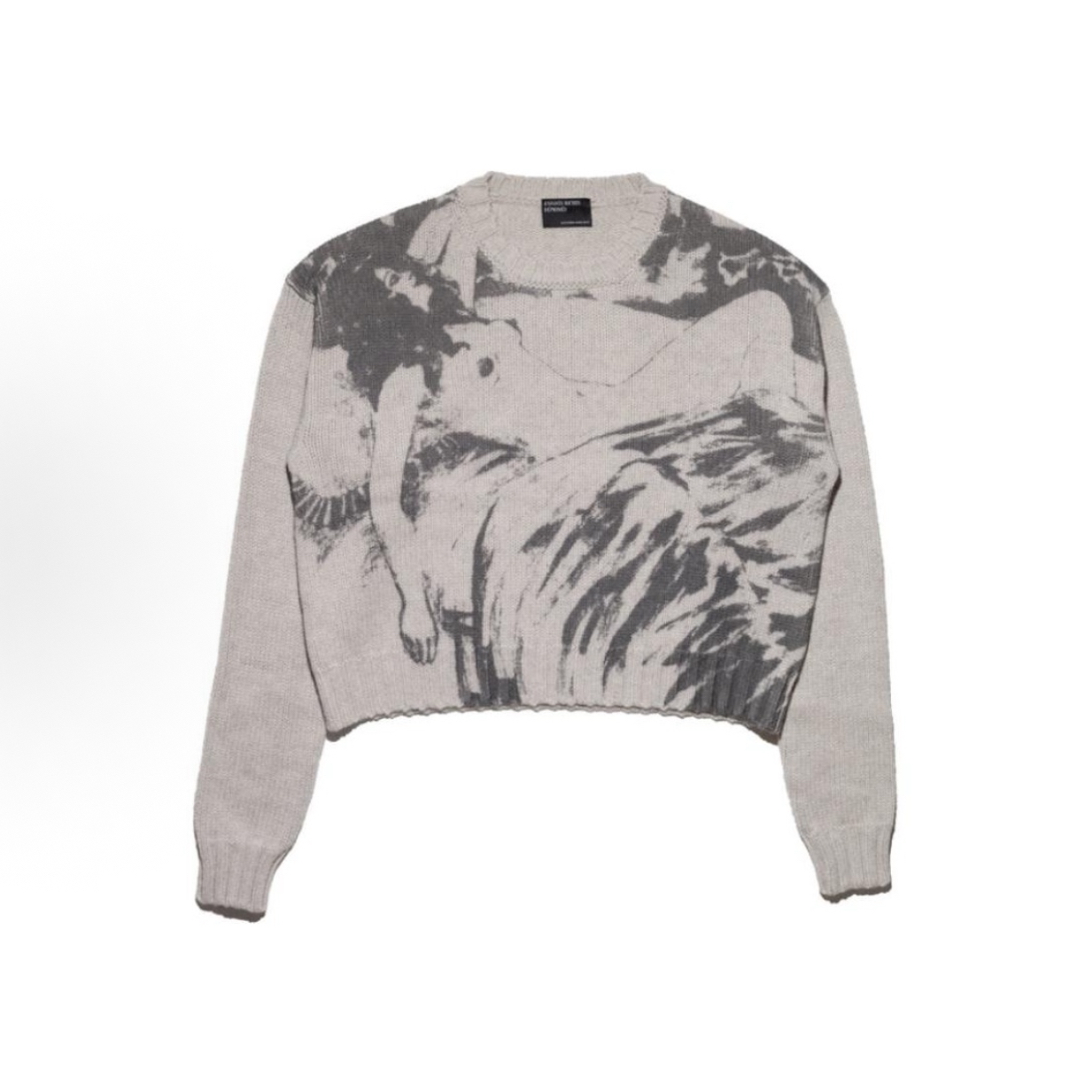 Tags: Chunky Knit Sweater, Cropped Sweater, Designer Sweater, Erd Sweater, Figure Print Sweater, Long Sleeve Sweater