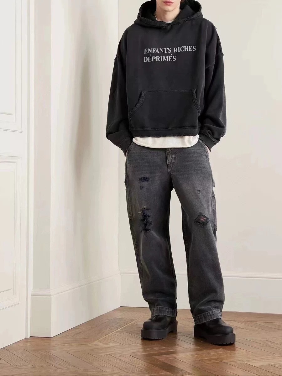 Introducing the Enfants Riches Déprimés Distressed Straight Leg Jeans, a perfect blend of edgy style and high-quality craftsmanship.