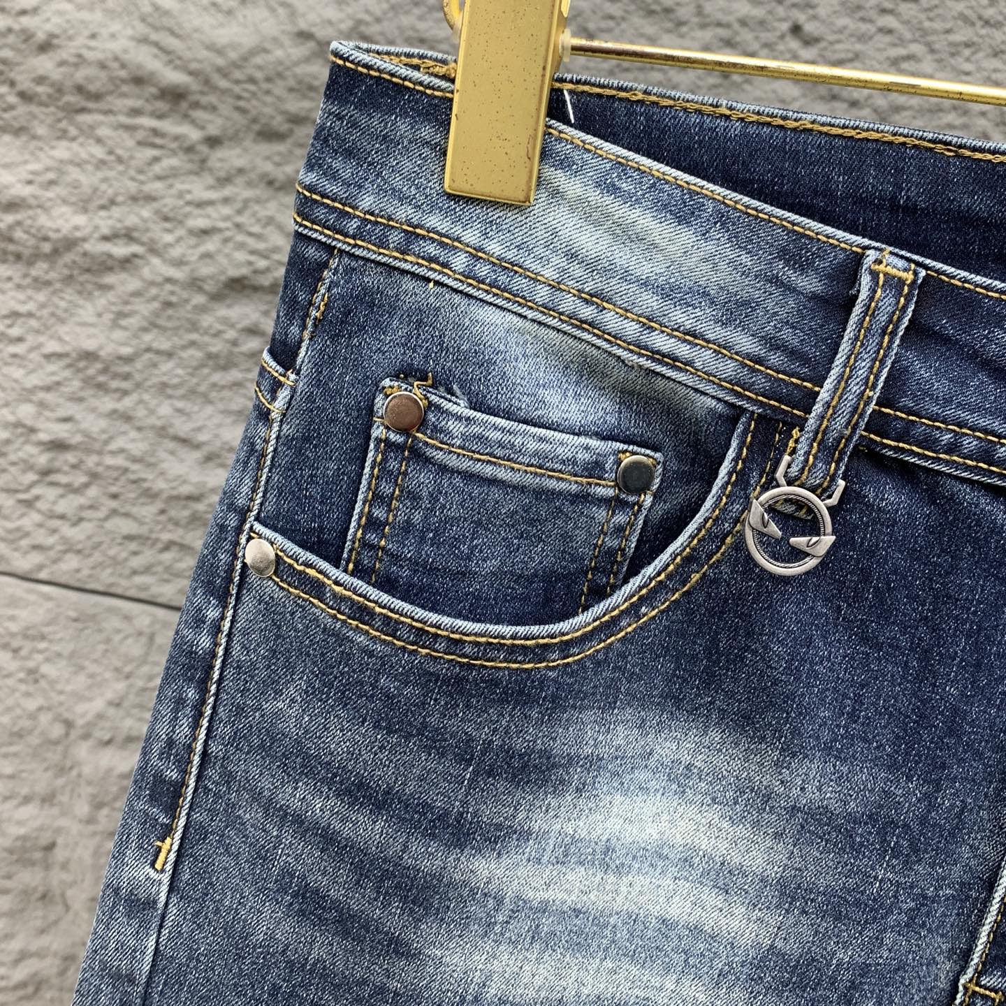 Introducing the Fendi 25SS men's denim jeans, a fusion of luxury and streetwear. These jeans are designed for the modern man who values both style and comfort.