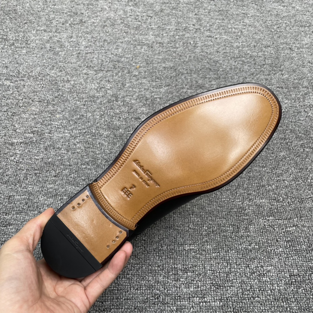 Crafted for the discerning gentleman, these Ferragamo dress shoes exude sophistication and timeless style. The classic design and premium materials ensure both comfort and elegance, making them a staple in any wardrobe.