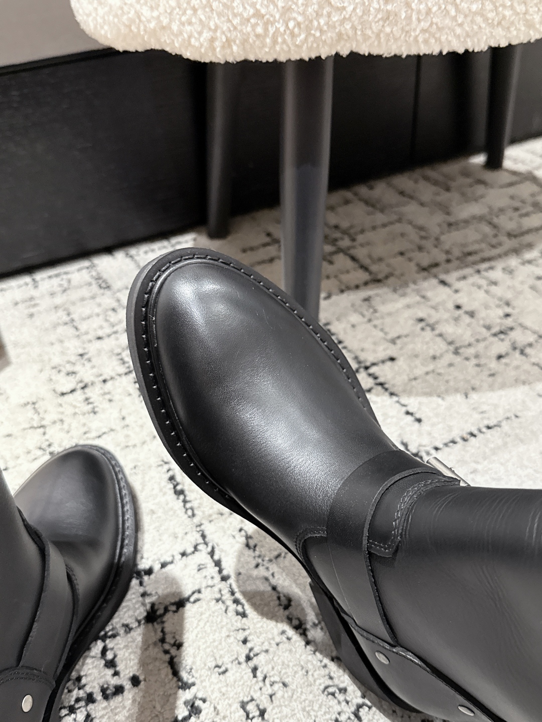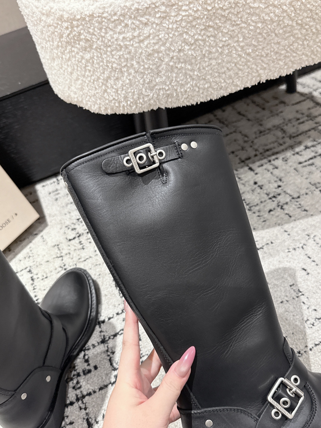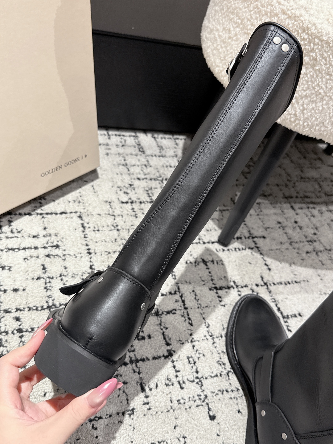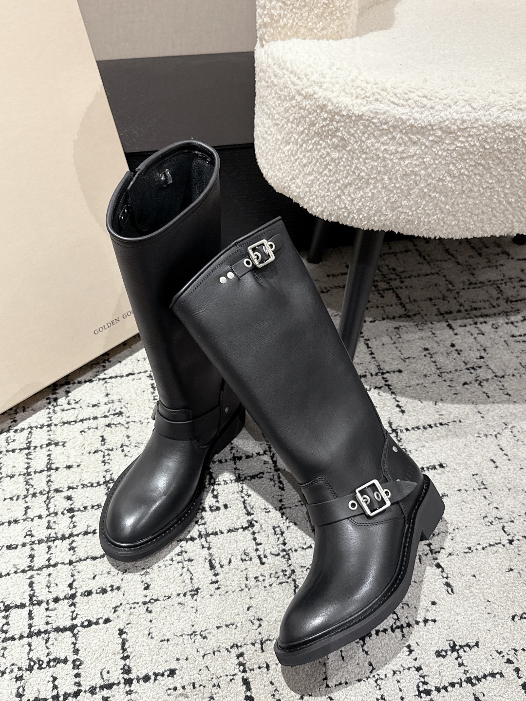 Tags: Black Leather Boots, Buckle Detail Boots, Golden Goose Boots, Leather Riding Boots, Tall Motorcycle Boots