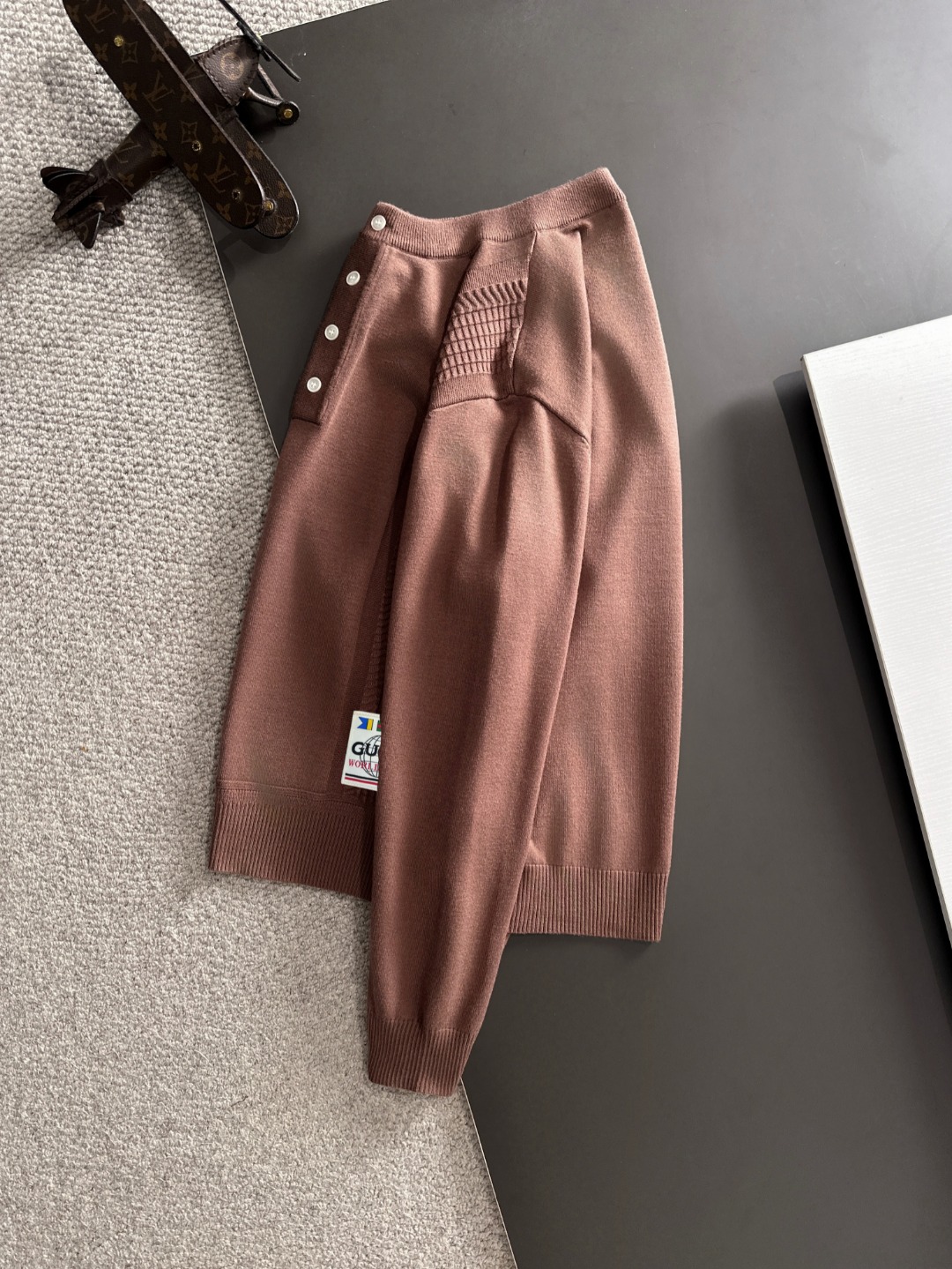 Tags: Embroidered Logo Sweater, Gucci Wool Sweater, Luxury Wool Blend Sweater, Men Button Sweater, Ribbed Wool Sweater