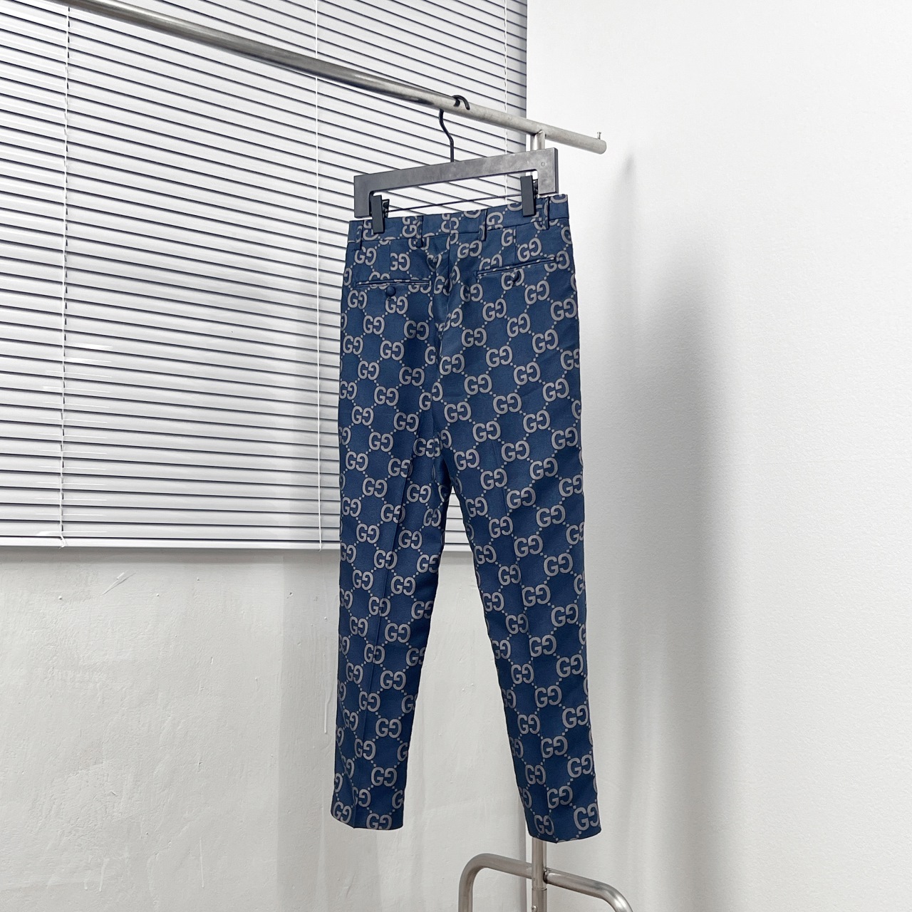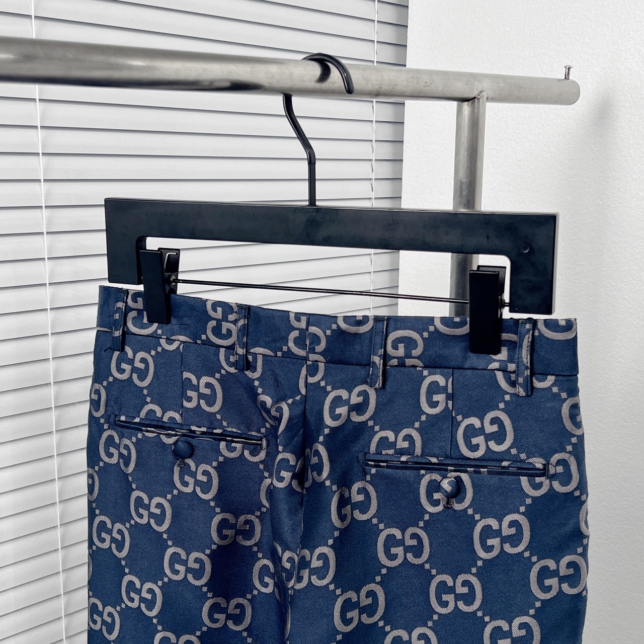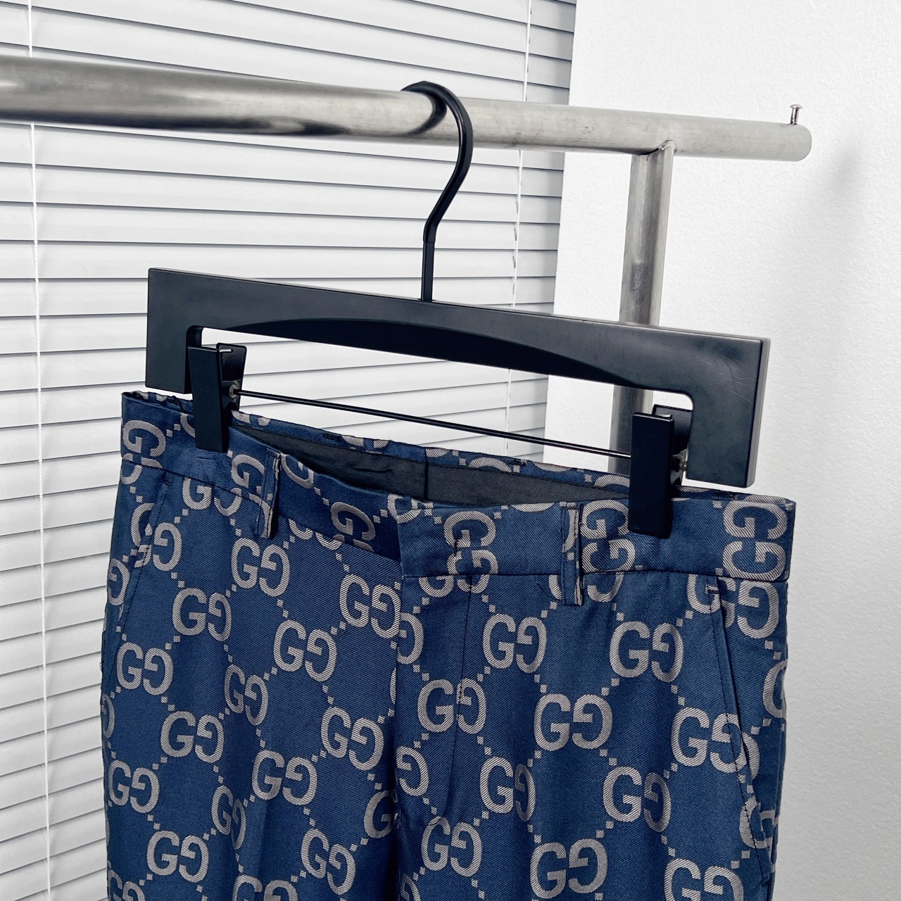 Tags: Dark Blue Cotton Pants, GG Logo Trousers, Gucci Cotton Trousers, Jacquard Weave Trousers, Men's Designer Trousers