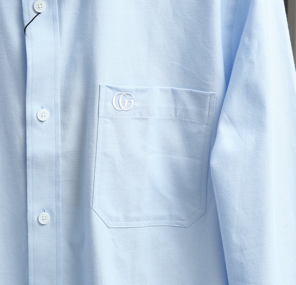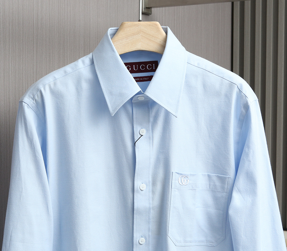 Tags: Business Casual Shirt, Designer Men's Shirt, Gucci Oxford Shirt, Light Blue Dress Shirt, Men's Long Sleeve Shirt, Wrinkle Resistant Shirt