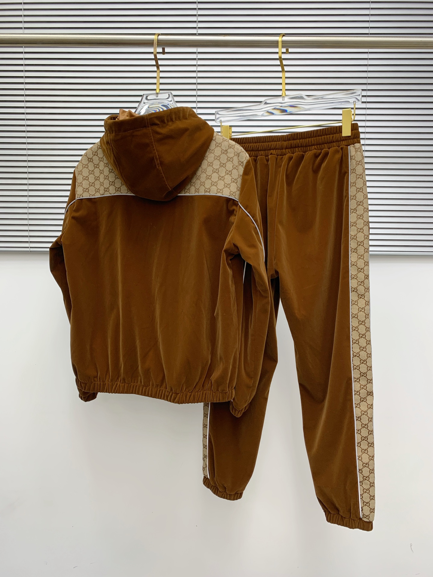 Experience luxury with this Gucci velvet tracksuit. Featuring a multi-pocket design and premium hardware, this set blends comfort with high-end style.