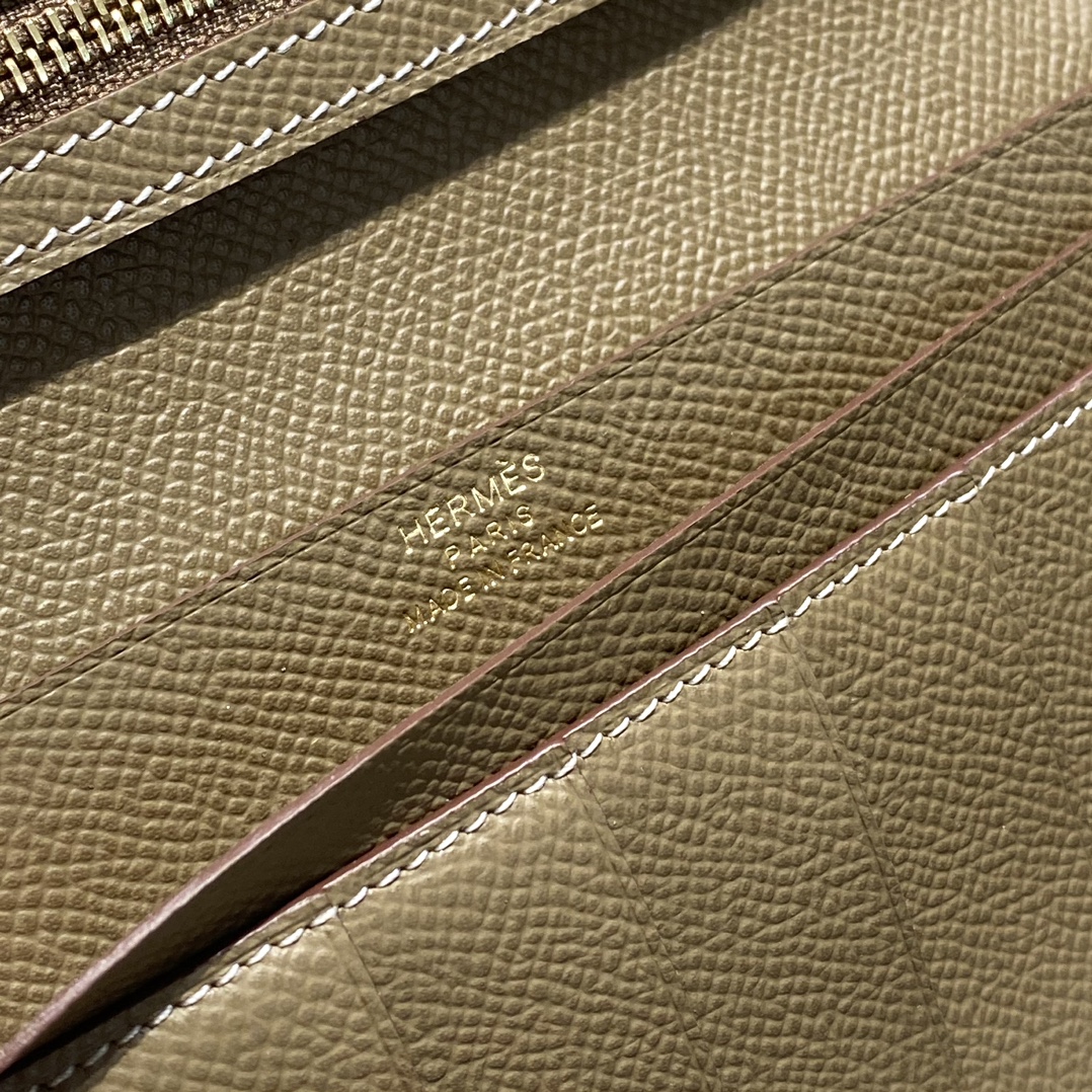 Elegant Hermès wallet in Epsom palm grain leather, featuring a sleek design with a signature H gold buckle. Size: 17.5*9.5*2.5 cm.