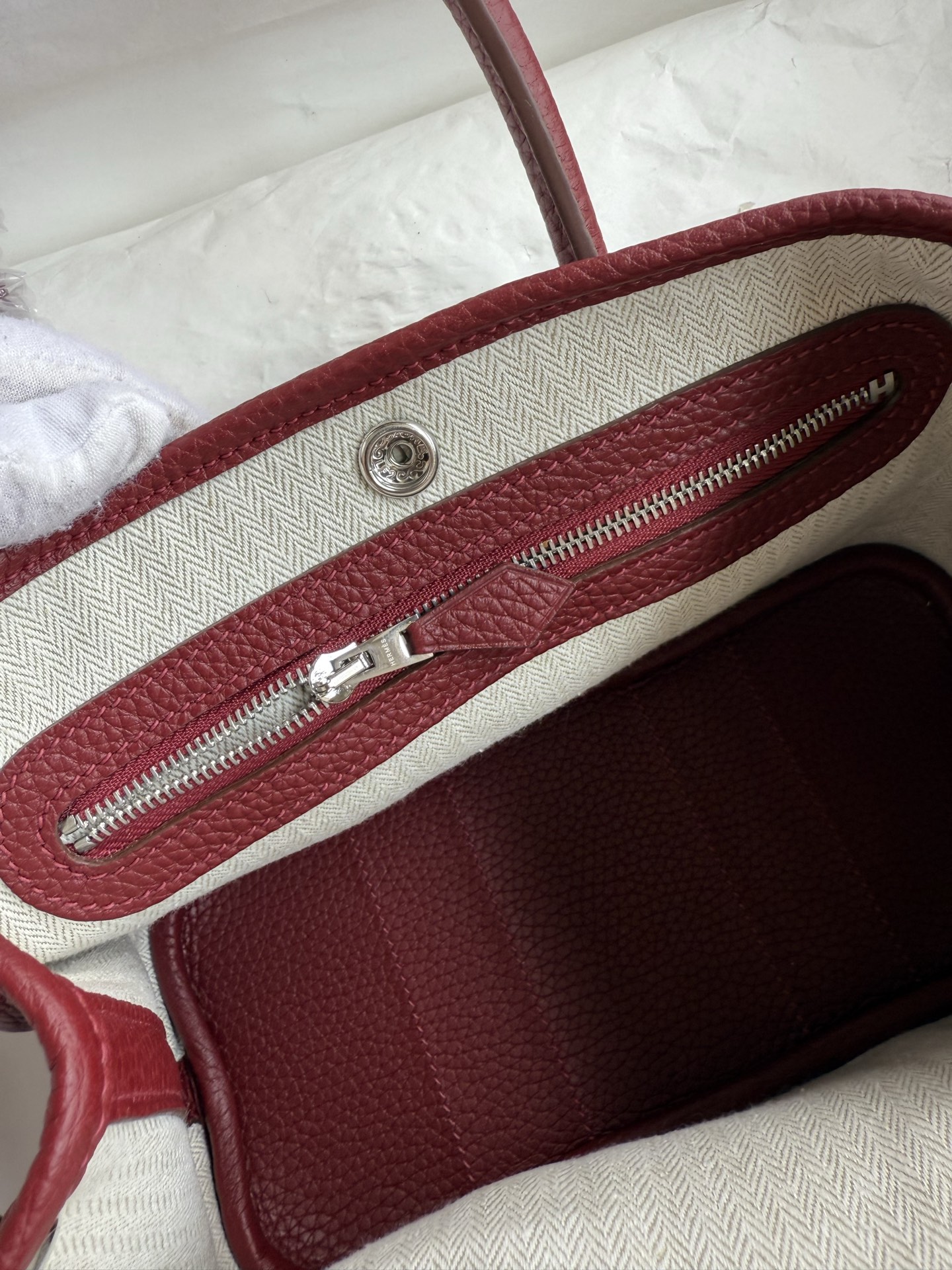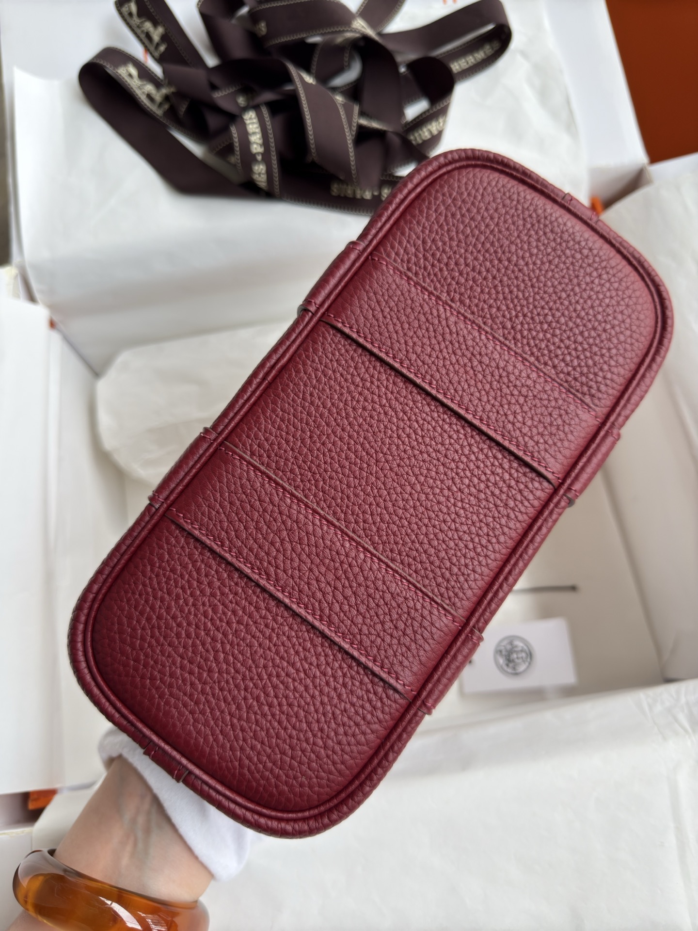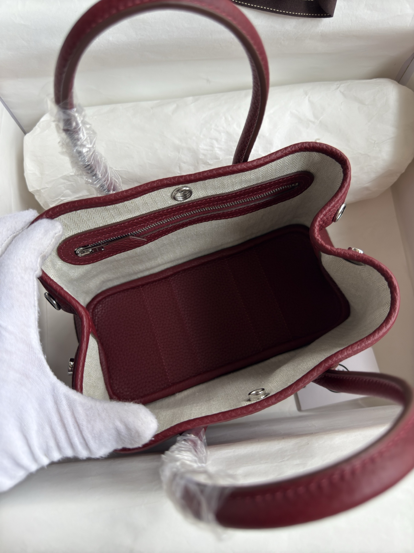 Tags: Designer Mini Bag, Hermès Garden Party Bag, Luxury Garden Bag, Mini Wine Red Bag, TC Leather Handbag