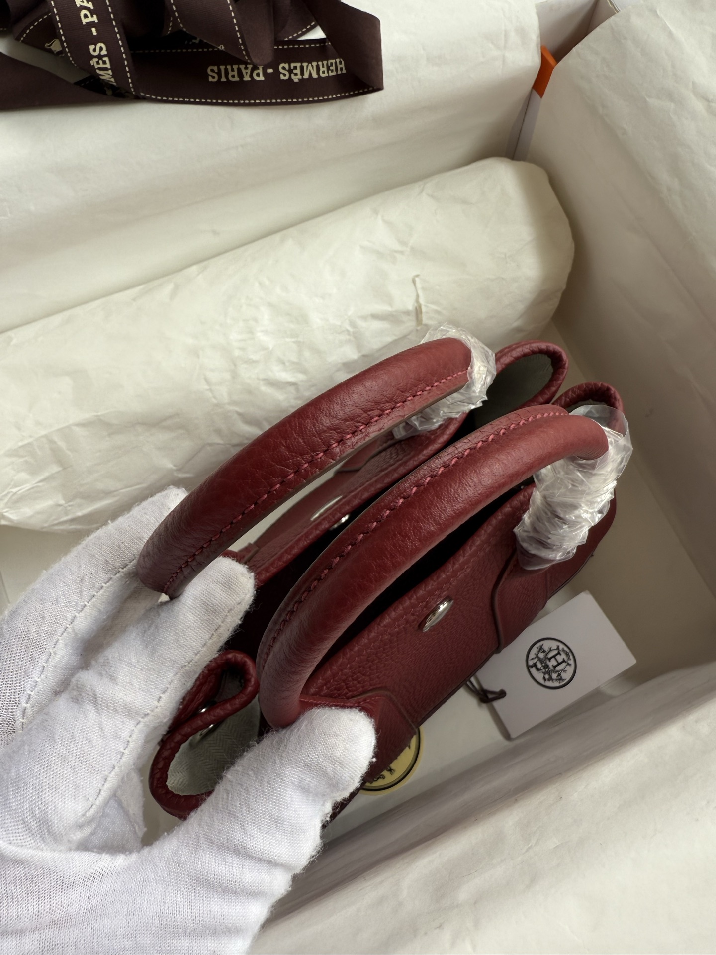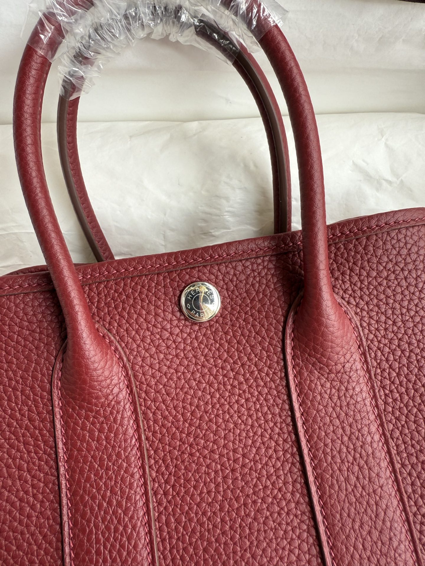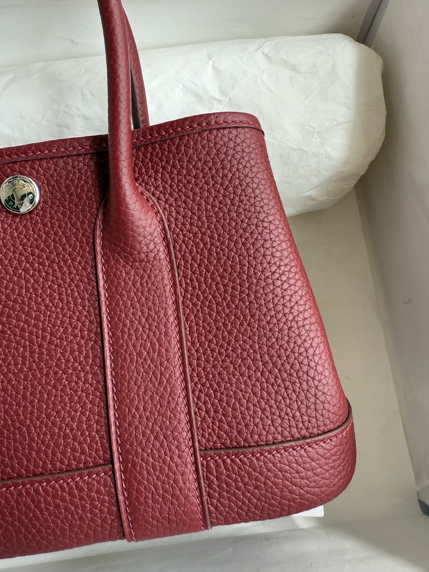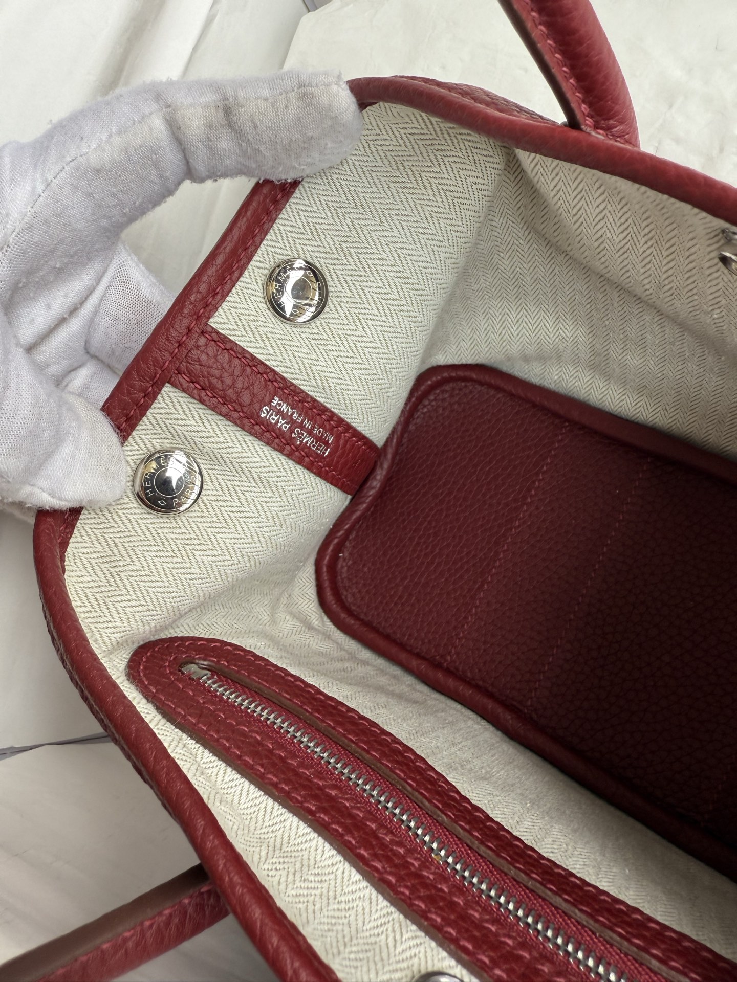 Tags: Designer Mini Bag, Hermès Garden Party Bag, Luxury Garden Bag, Mini Wine Red Bag, TC Leather Handbag