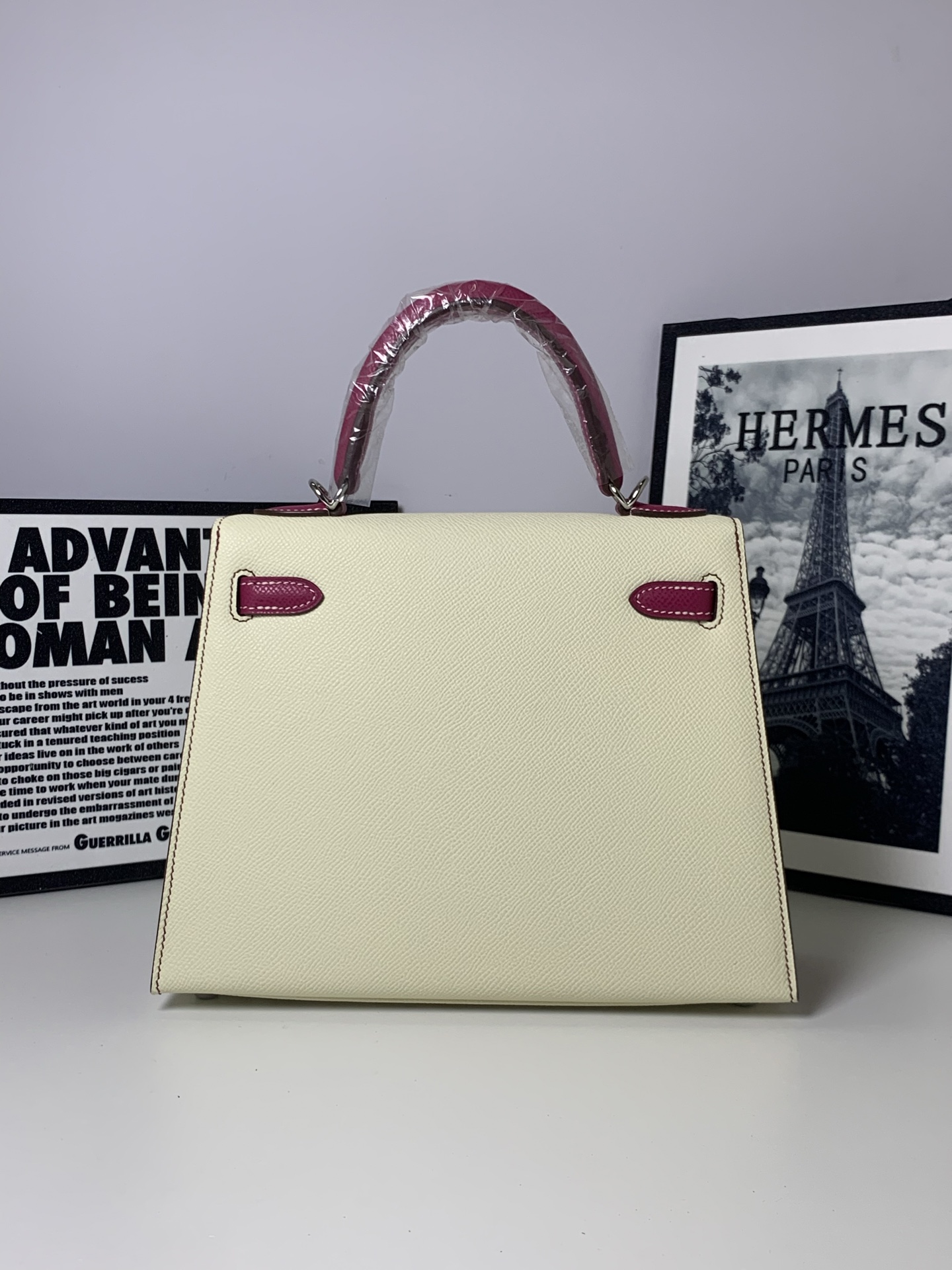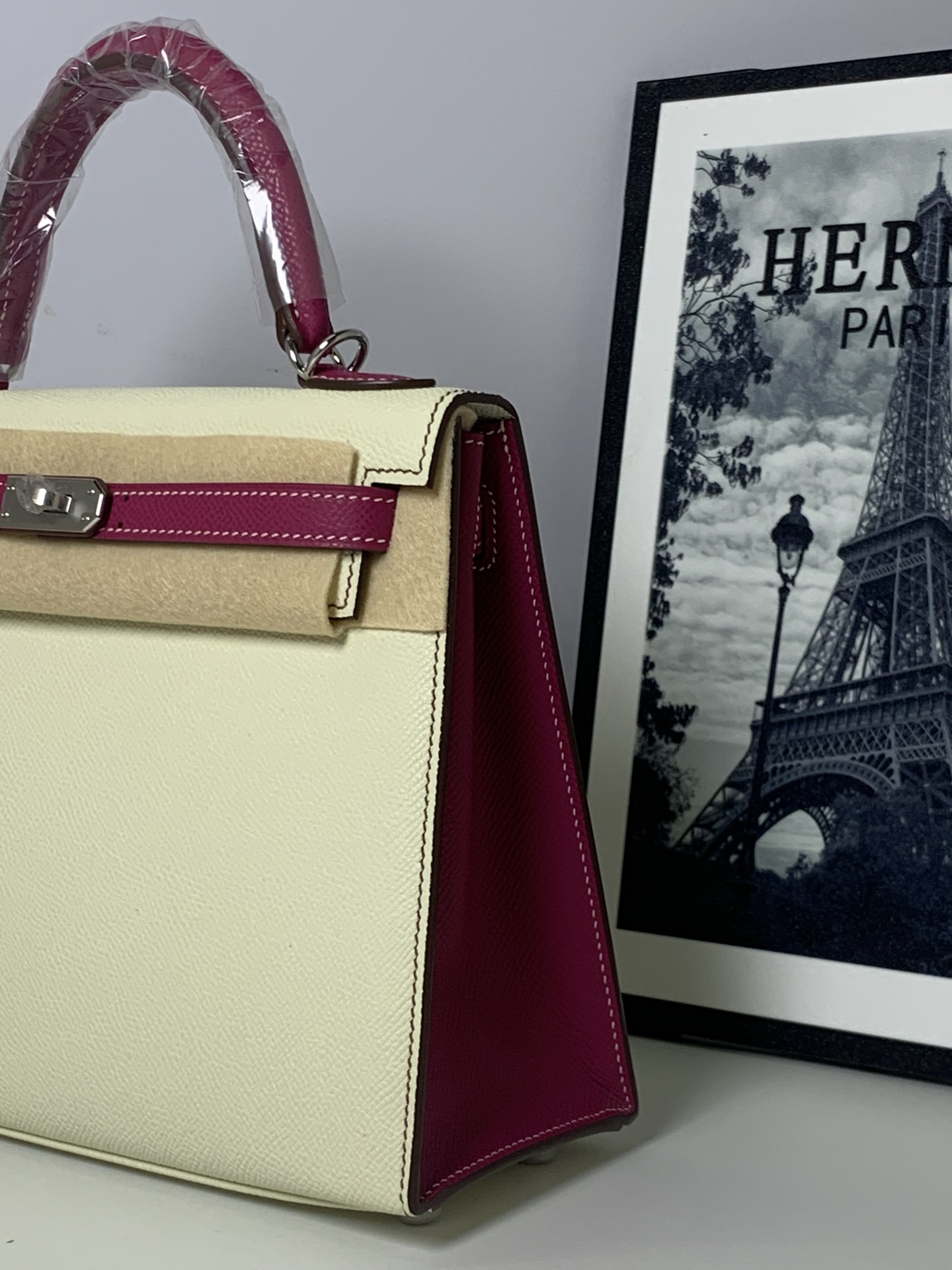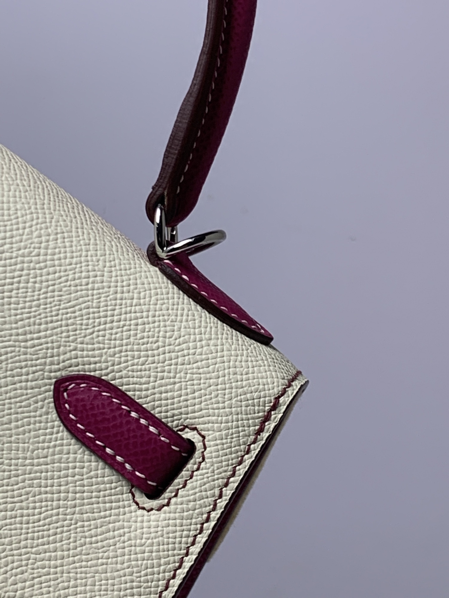 Tags: Designer Handbag, Epsom Leather Handbag, Hermes Kelly Bag, Luxury Bag, Silver Hardware Bag, Two Tone Bag
