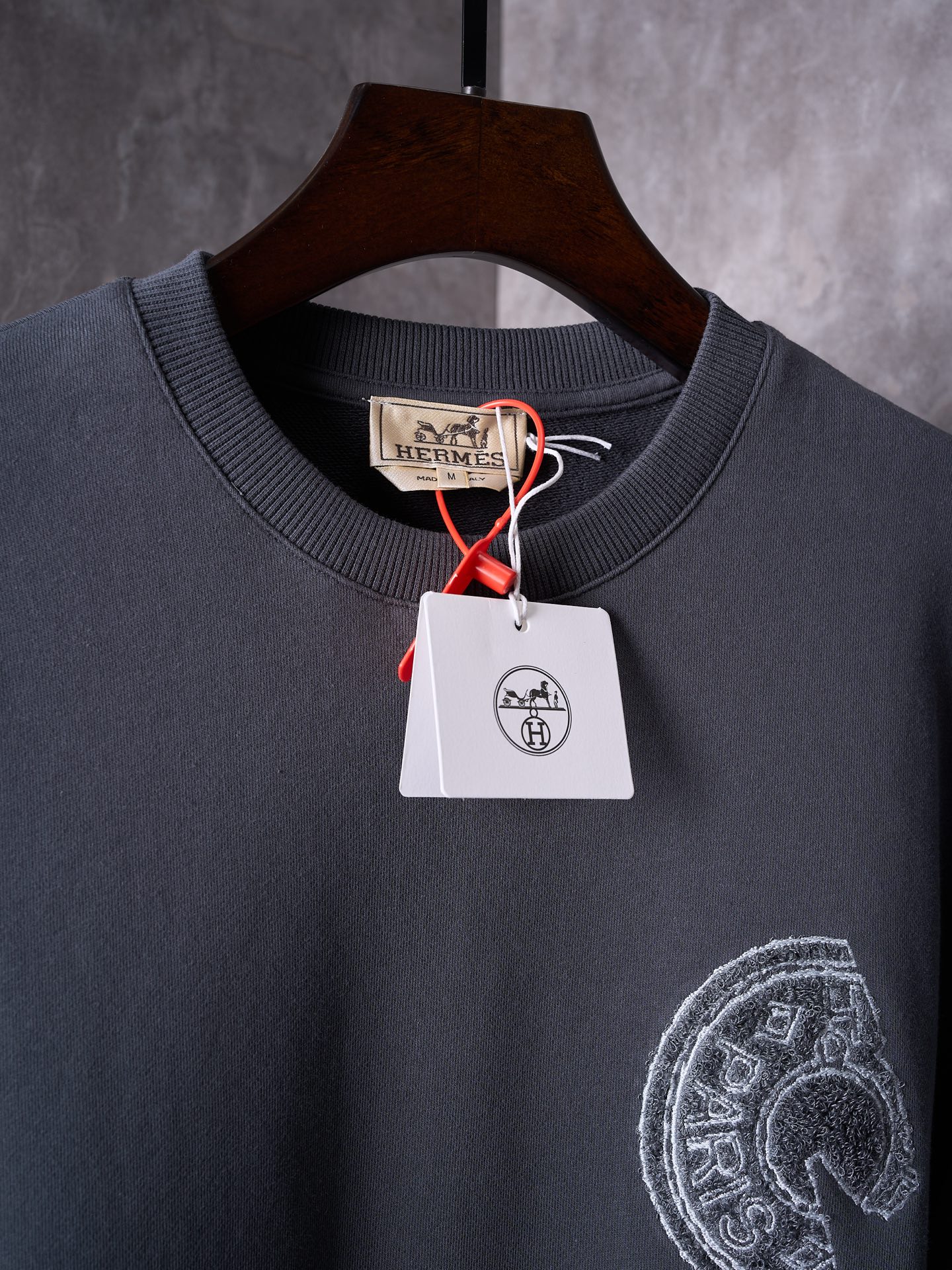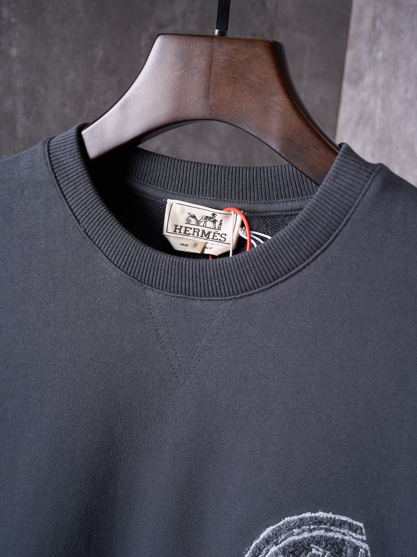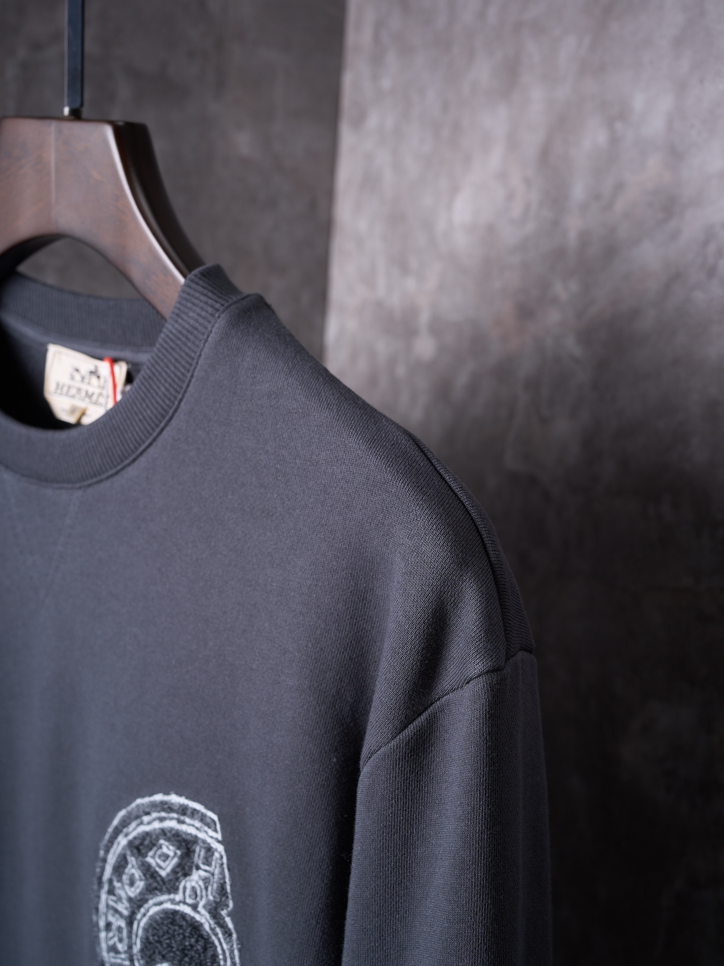 Tags: Cotton Sweatshirt, Crewneck Sweatshirt, Hermes Paris Sweatshirt, Ink Gray Sweatshirt, Relaxed Fit Sweatshirt, Saddle Stitch Applique
