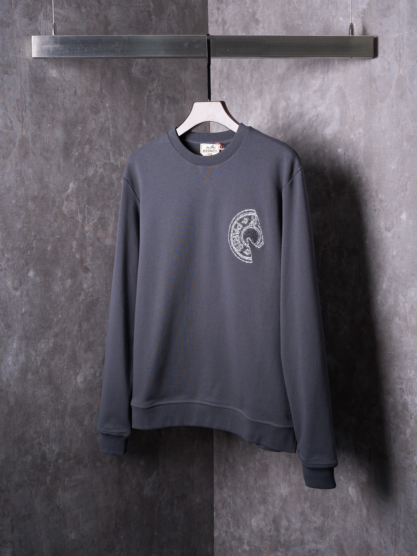 Hermes Paris Saddle Stitch Applique Crewneck Sweatshirt - Ink Gray, Relaxed Fit