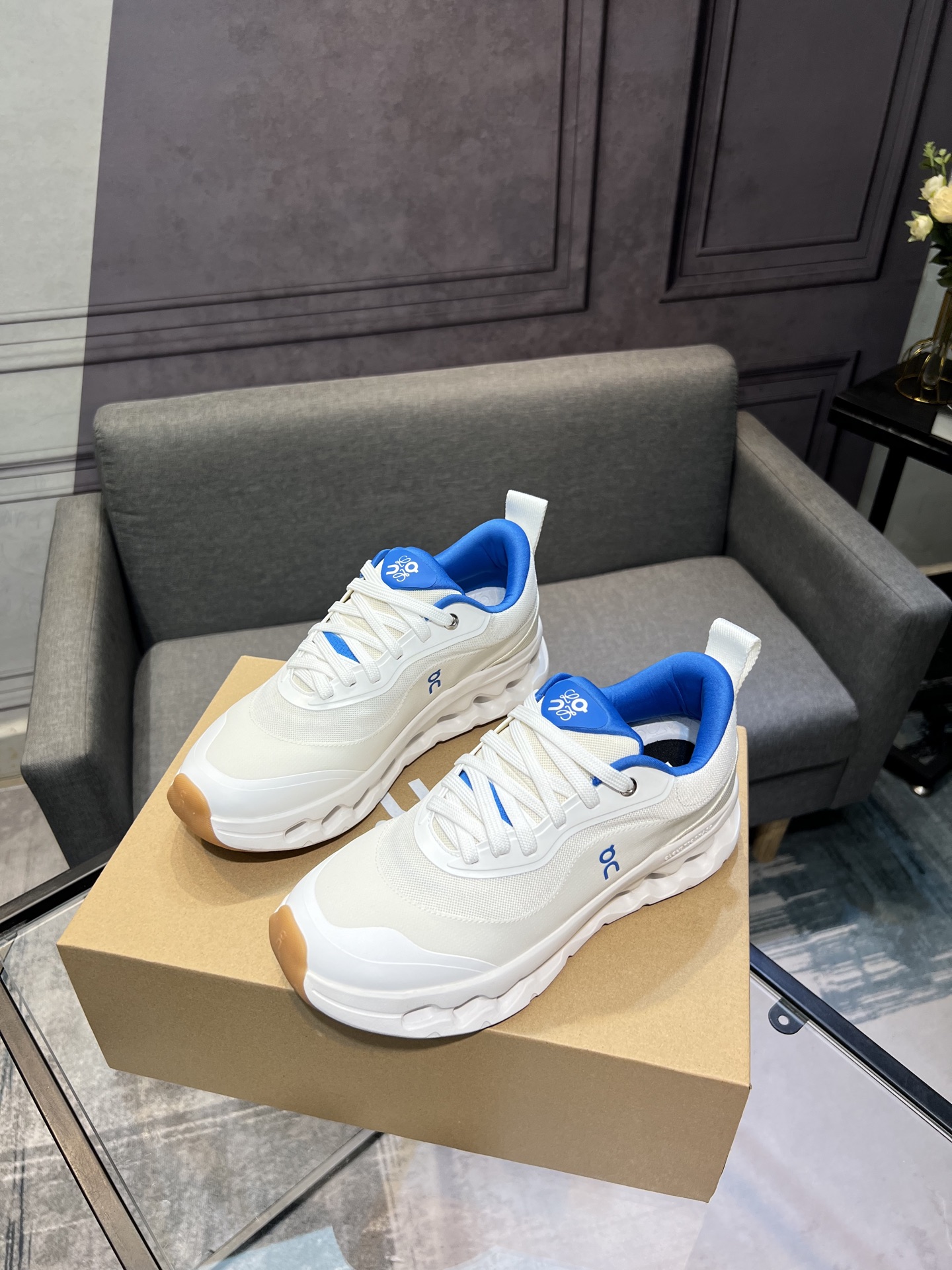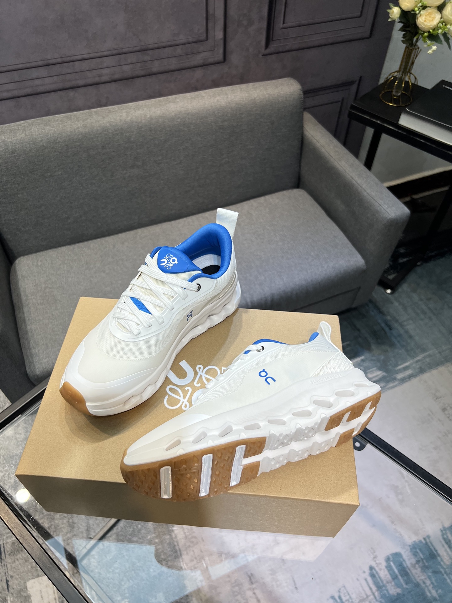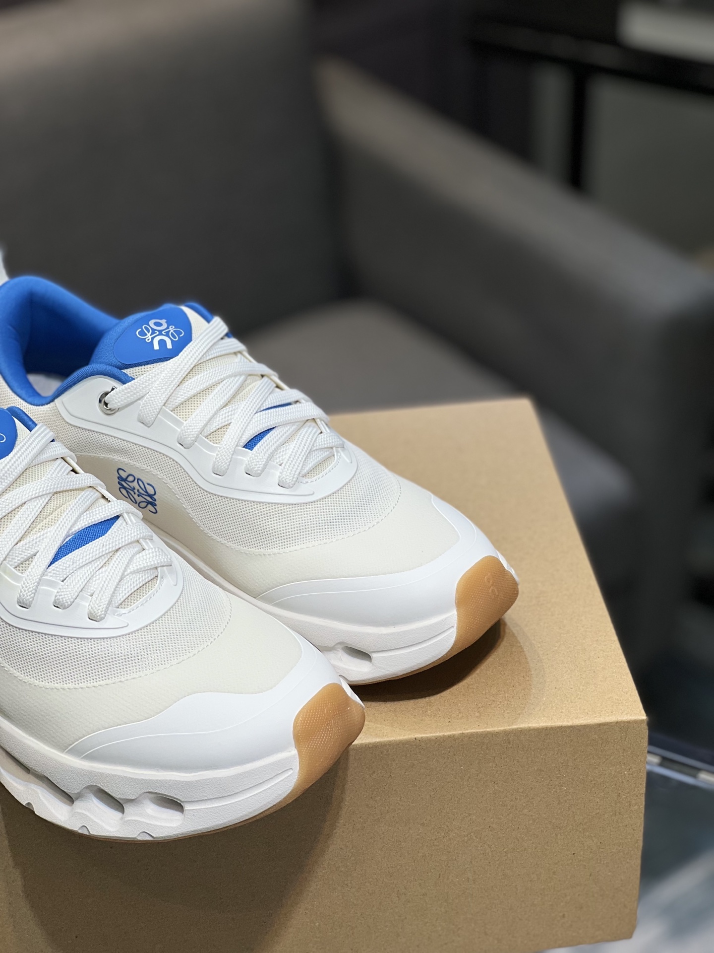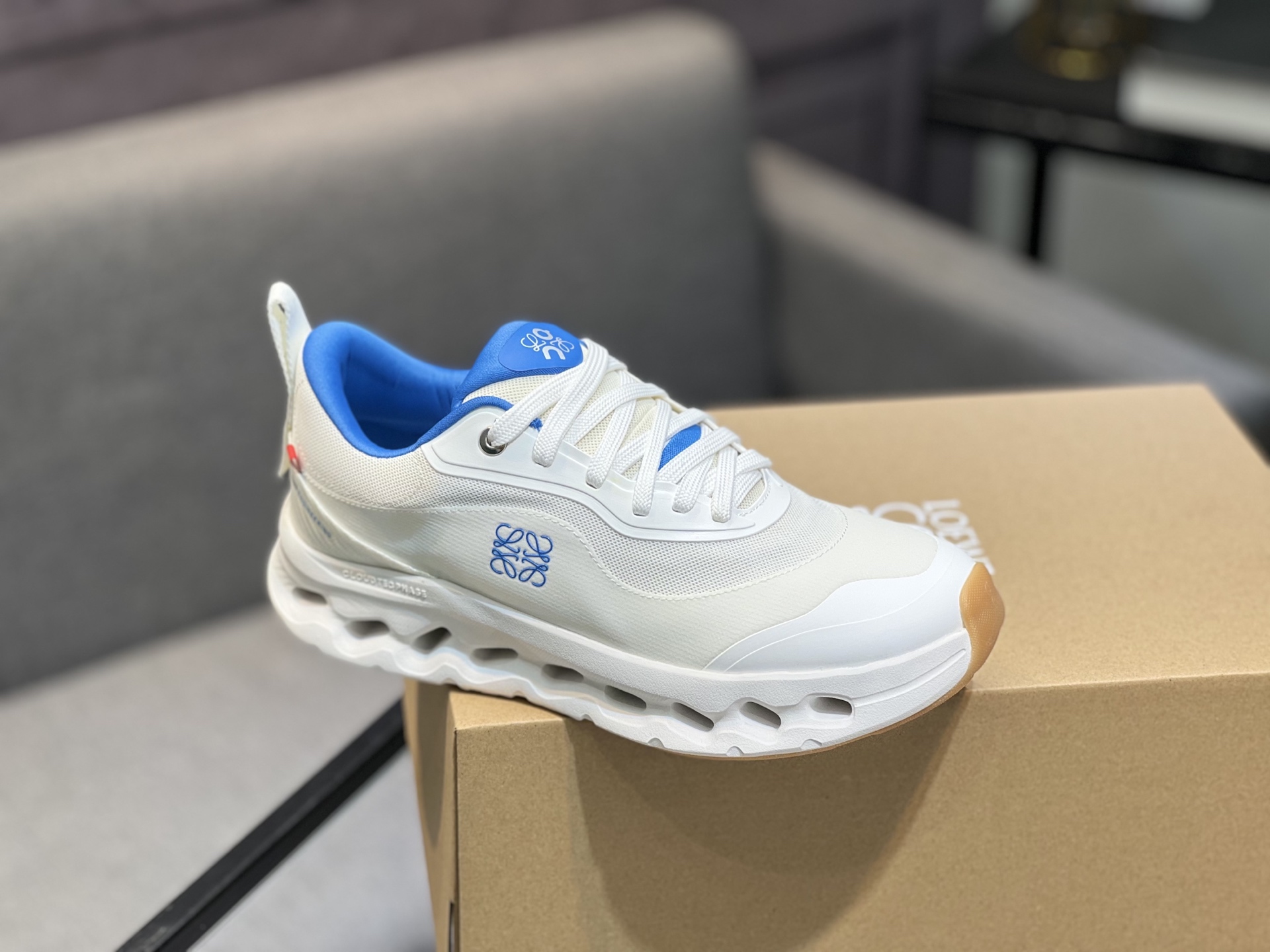 Combining On's technical expertise with Loewe's design aesthetics, these running shoes offer both style and functionality. Step into a world where fashion meets performance with the Loewe x On Cloudtilt 2.0.