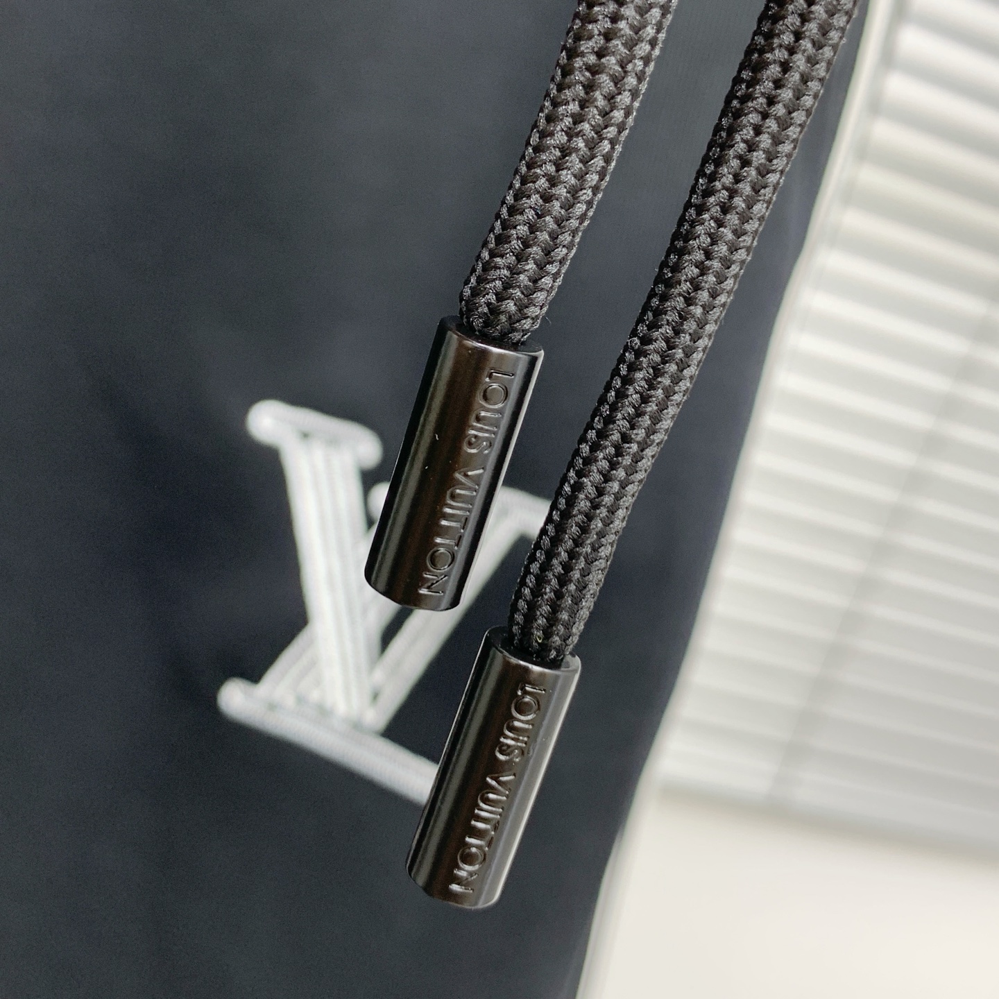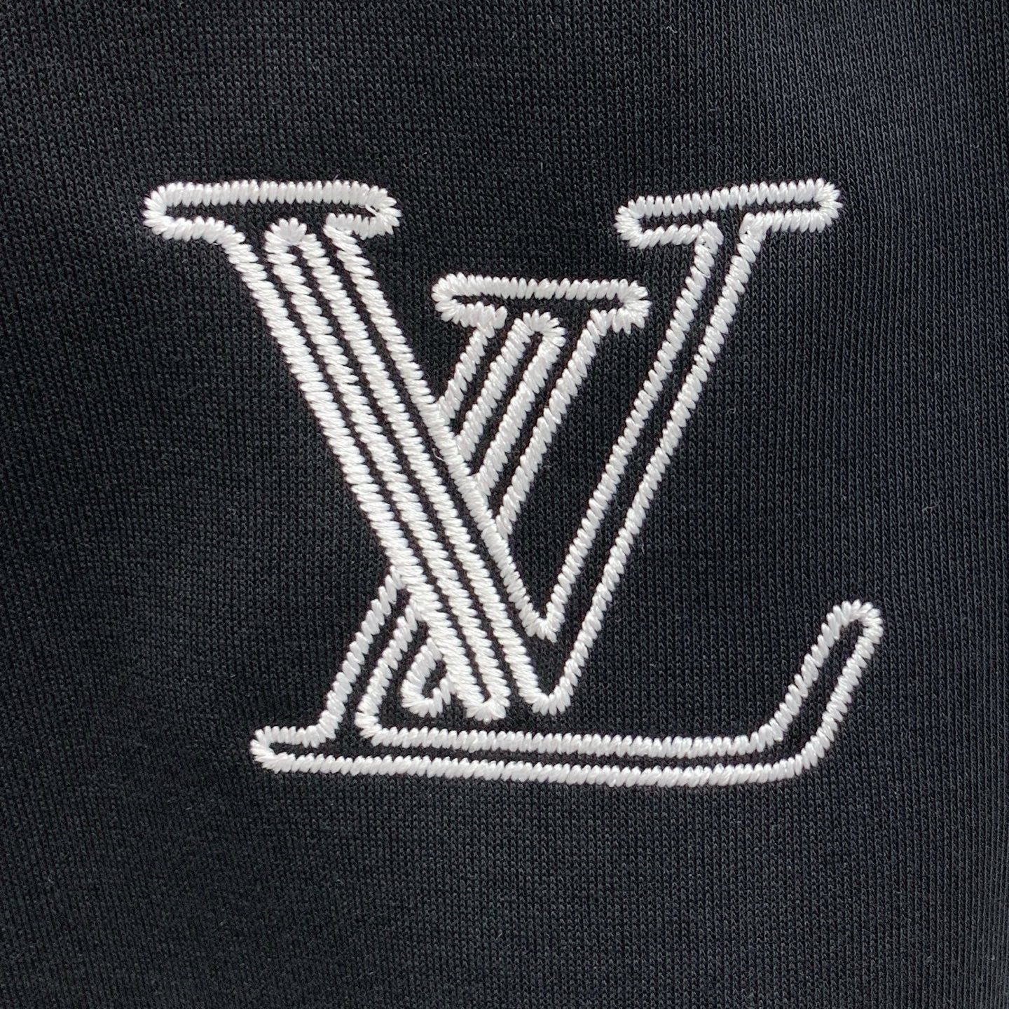 Louis Vuitton 2025 Black Casual Pants with Embroidered Logo and Custom Hardware