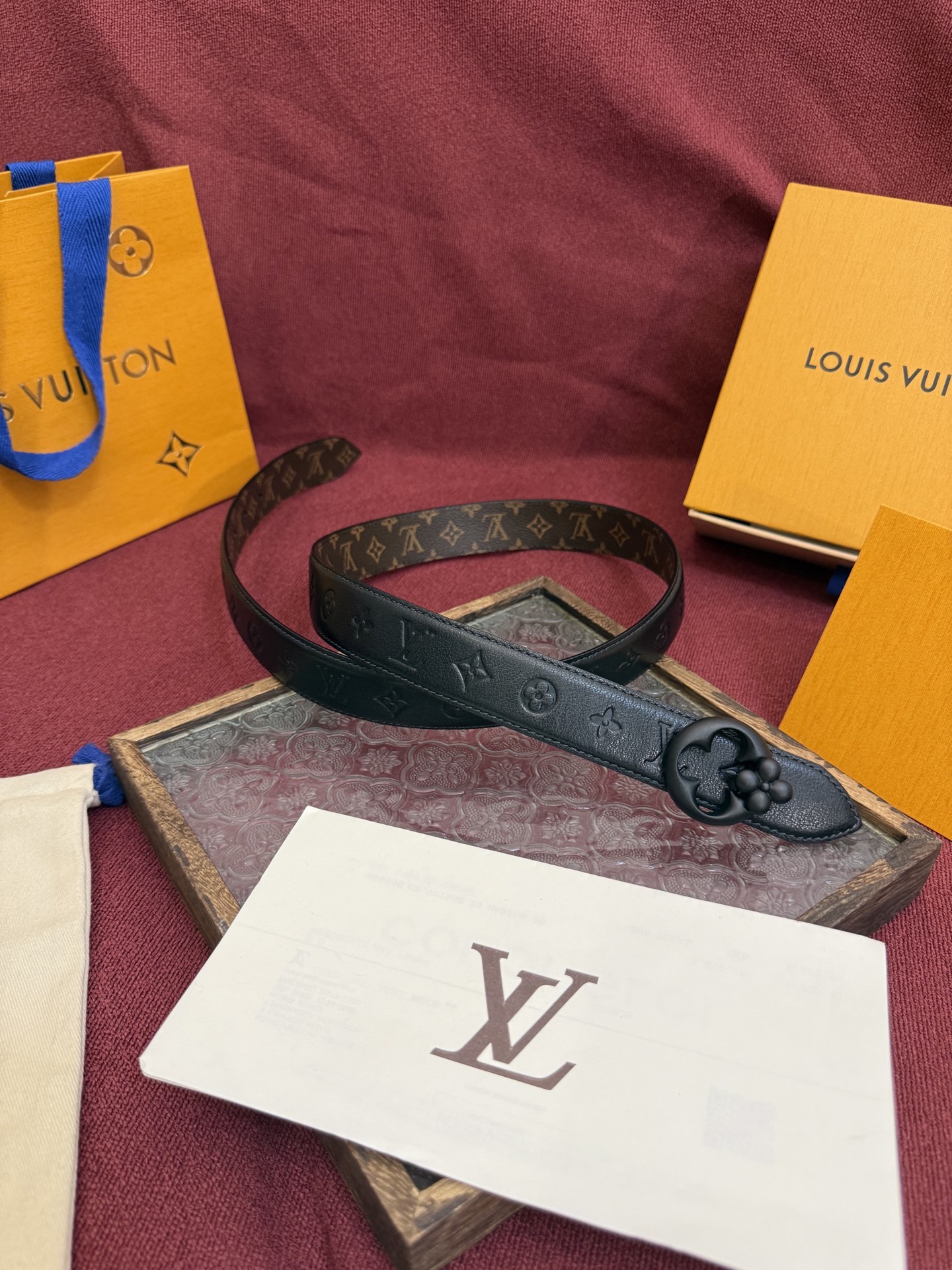 This Louis Vuitton 3.0cm reversible belt is a testament to luxury and timeless design. Crafted with meticulous attention to detail, it offers versatility and style for the discerning individual.