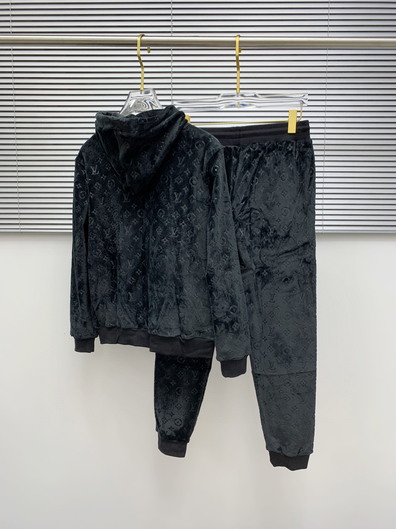 Louis Vuitton Embossed Monogram Velvet Hoodie and Jogger Set - Black