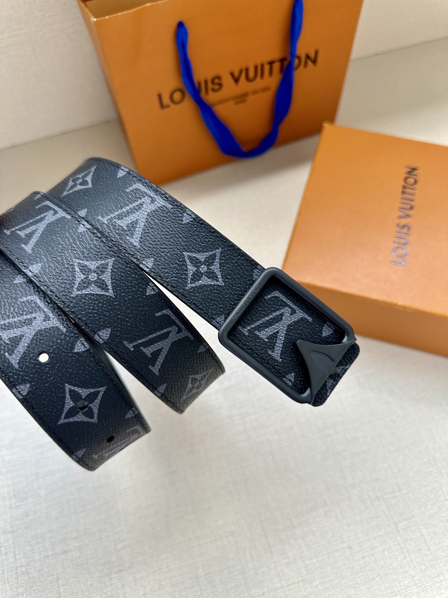 Elevate your style with the Louis Vuitton Initiales belt, featuring Monogram Eclipse canvas and a sleek leather lining.