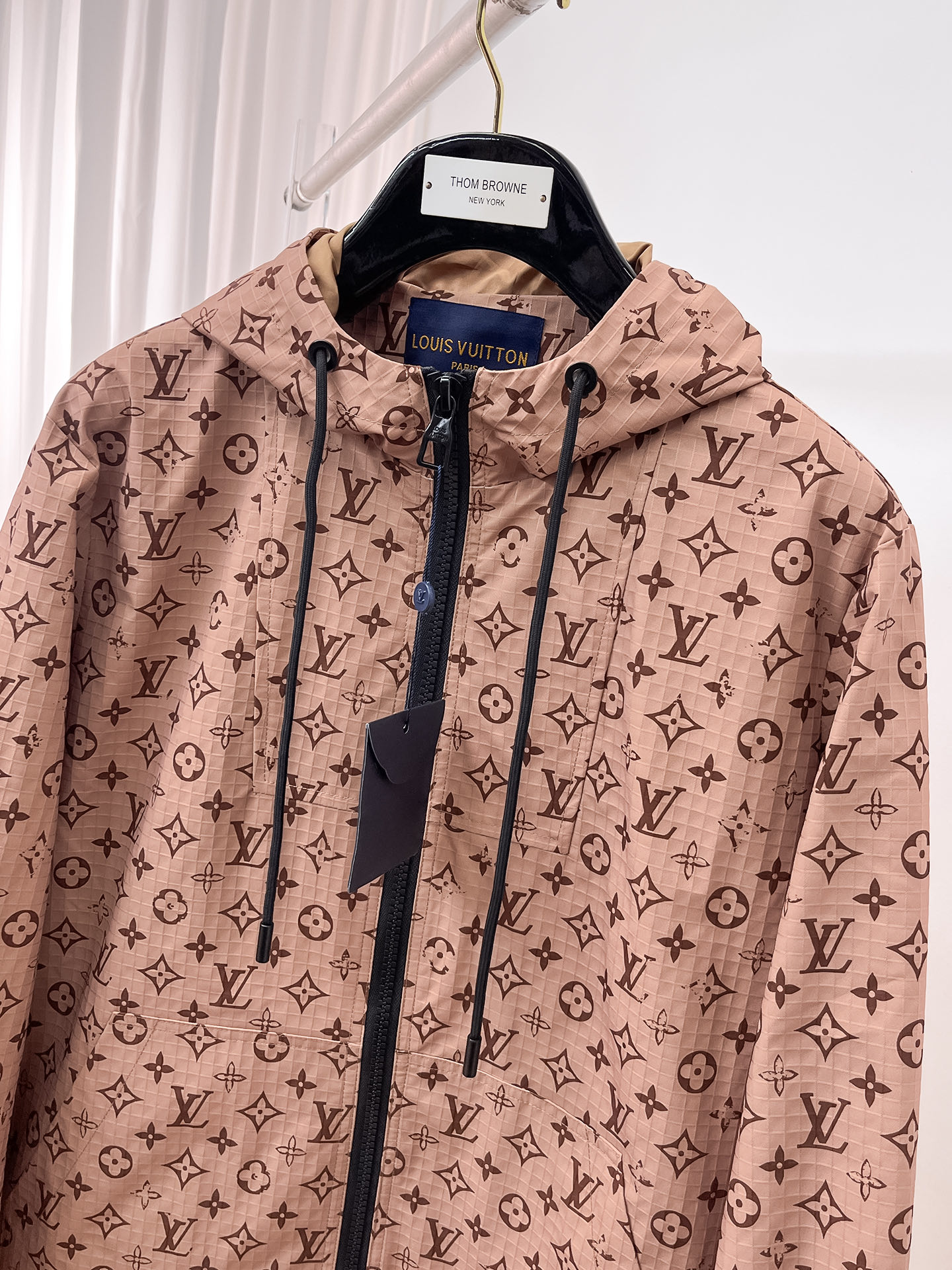 Tags: Designer Zip Up Jacket, Fashion Jacket, Louis Vuitton Jacket, Luxury Outerwear, Monogram Fashion, Monogram Print Jacket