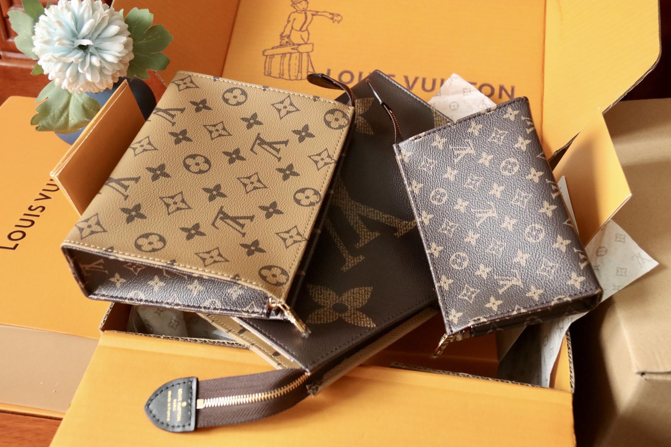 Tags: Designer Cosmetic Bags, Louis Vuitton Toiletry Pouch, Luxury Travel Pouches, Monogram Canvas Pouch Set, Washable Lining Bags