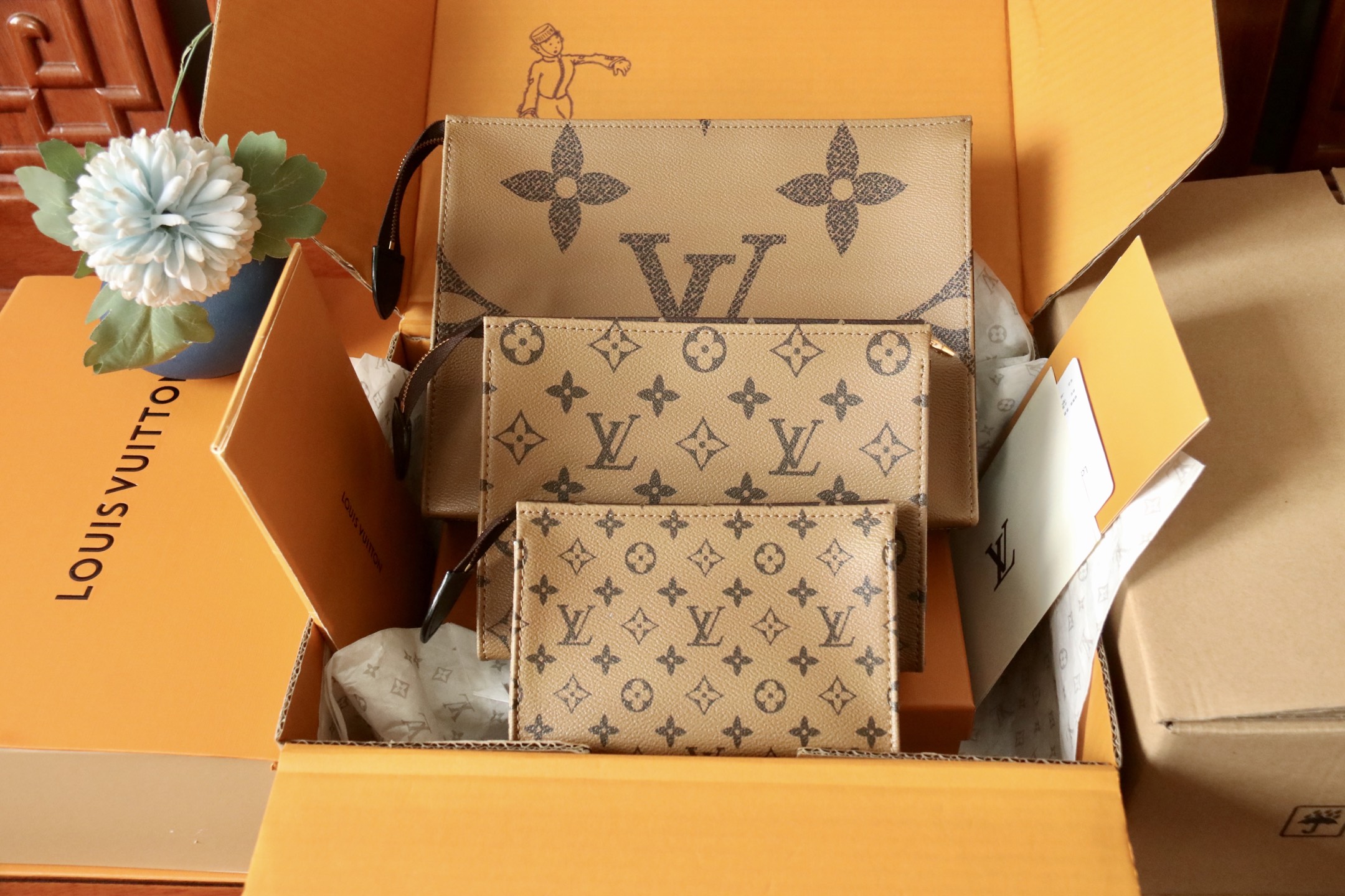 Louis Vuitton Trio Pouch Toiletry Bag Monogram Reverse Canvas Set of 3