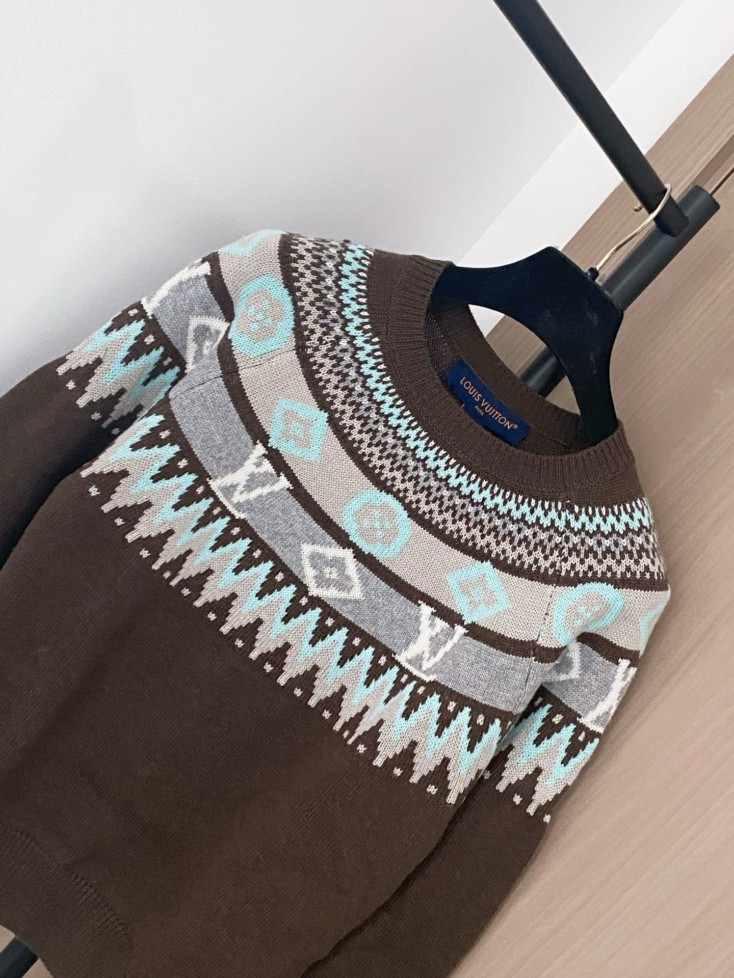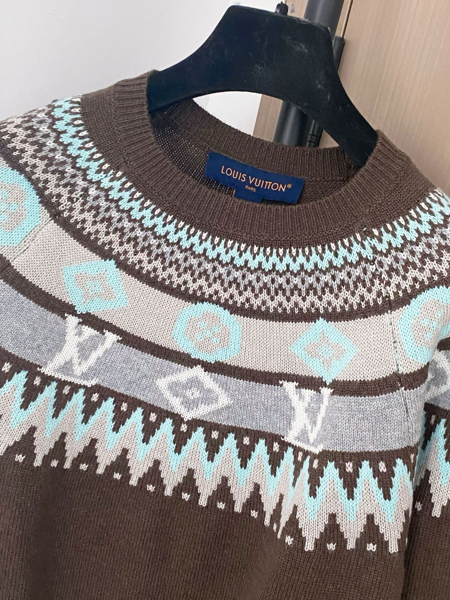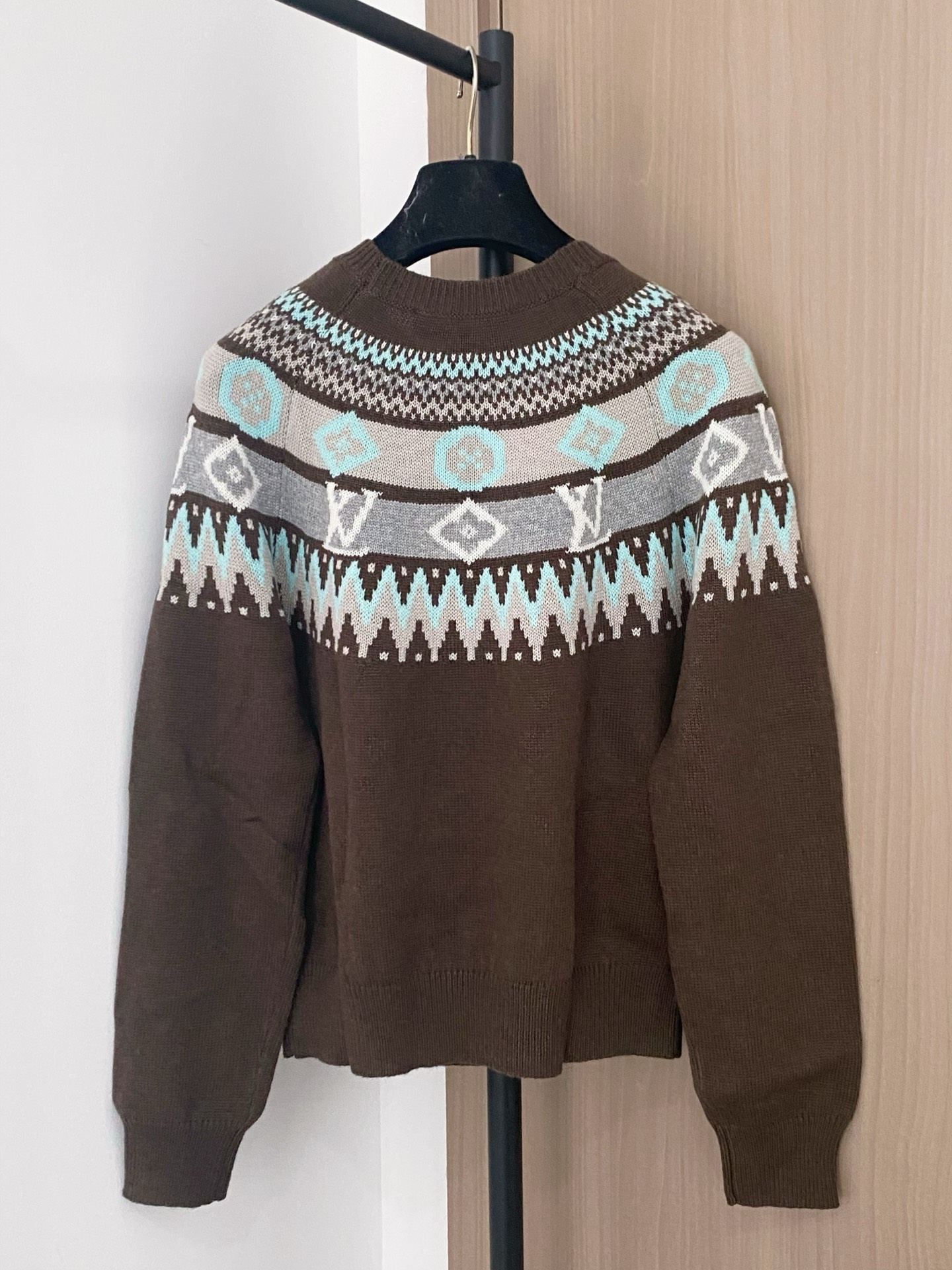 Tags: Designer Sweater, Louis Vuitton Sweater, Luxury Knitwear, Patterned Long Sleeve, Slim Fit Sweater, Winter Fashion