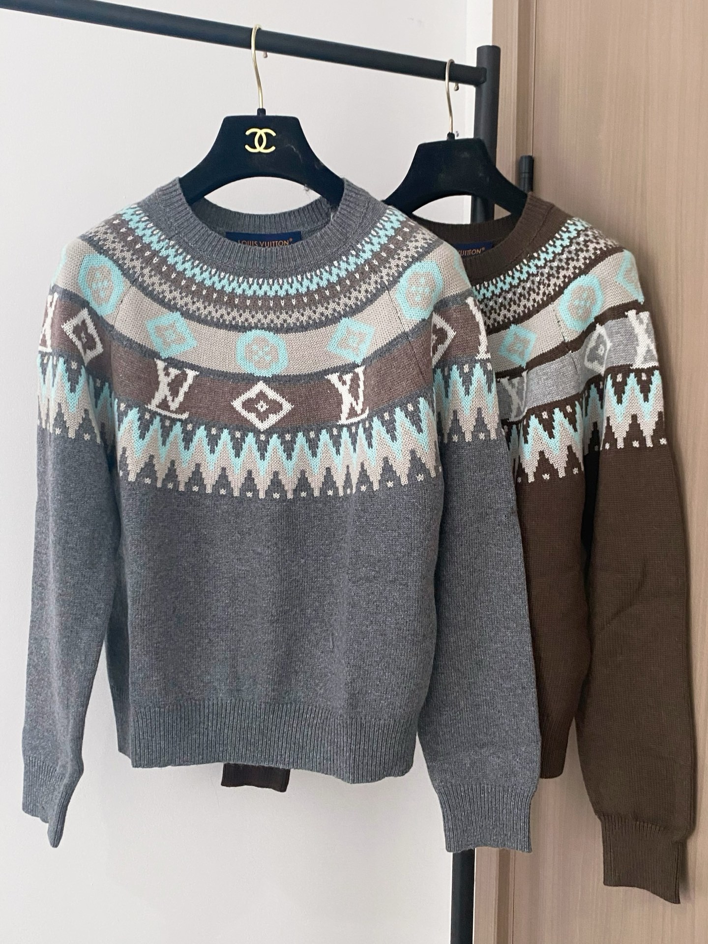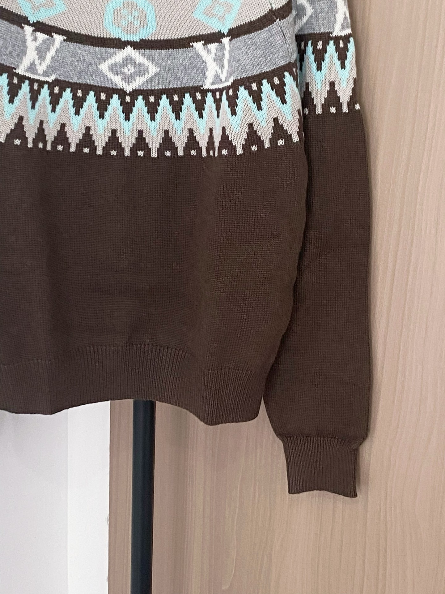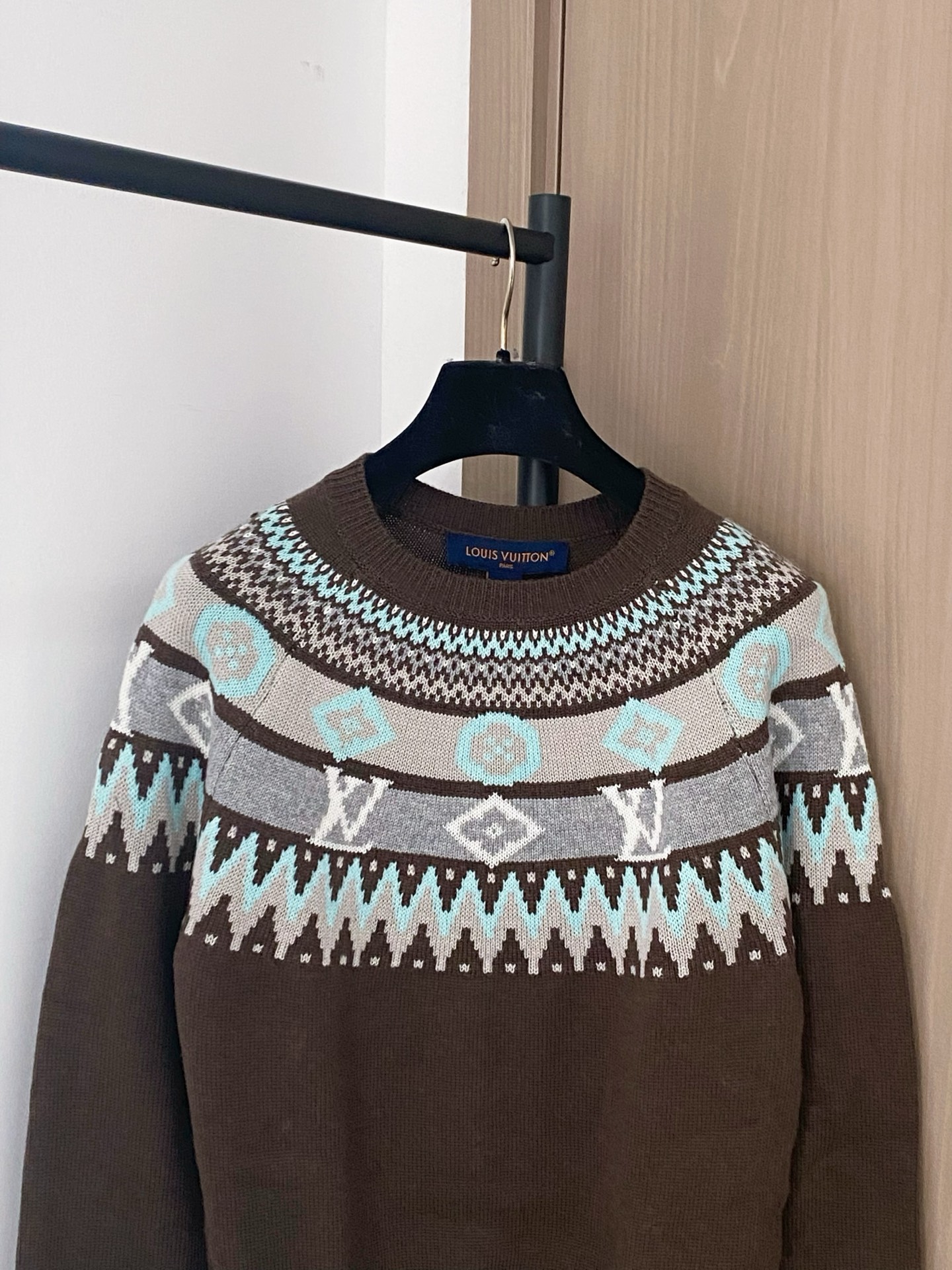 Tags: Designer Sweater, Louis Vuitton Sweater, Luxury Knitwear, Patterned Long Sleeve, Slim Fit Sweater, Winter Fashion