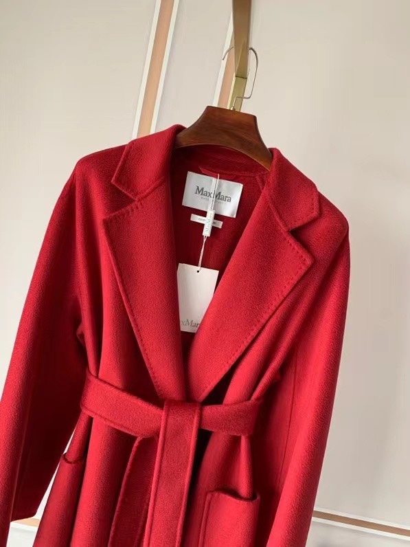 Tags: Designer Coat, Italian fashion, Long Cashmere Coat, Luxury Outerwear, Max Mara Cashmere Coat, Red belted coat