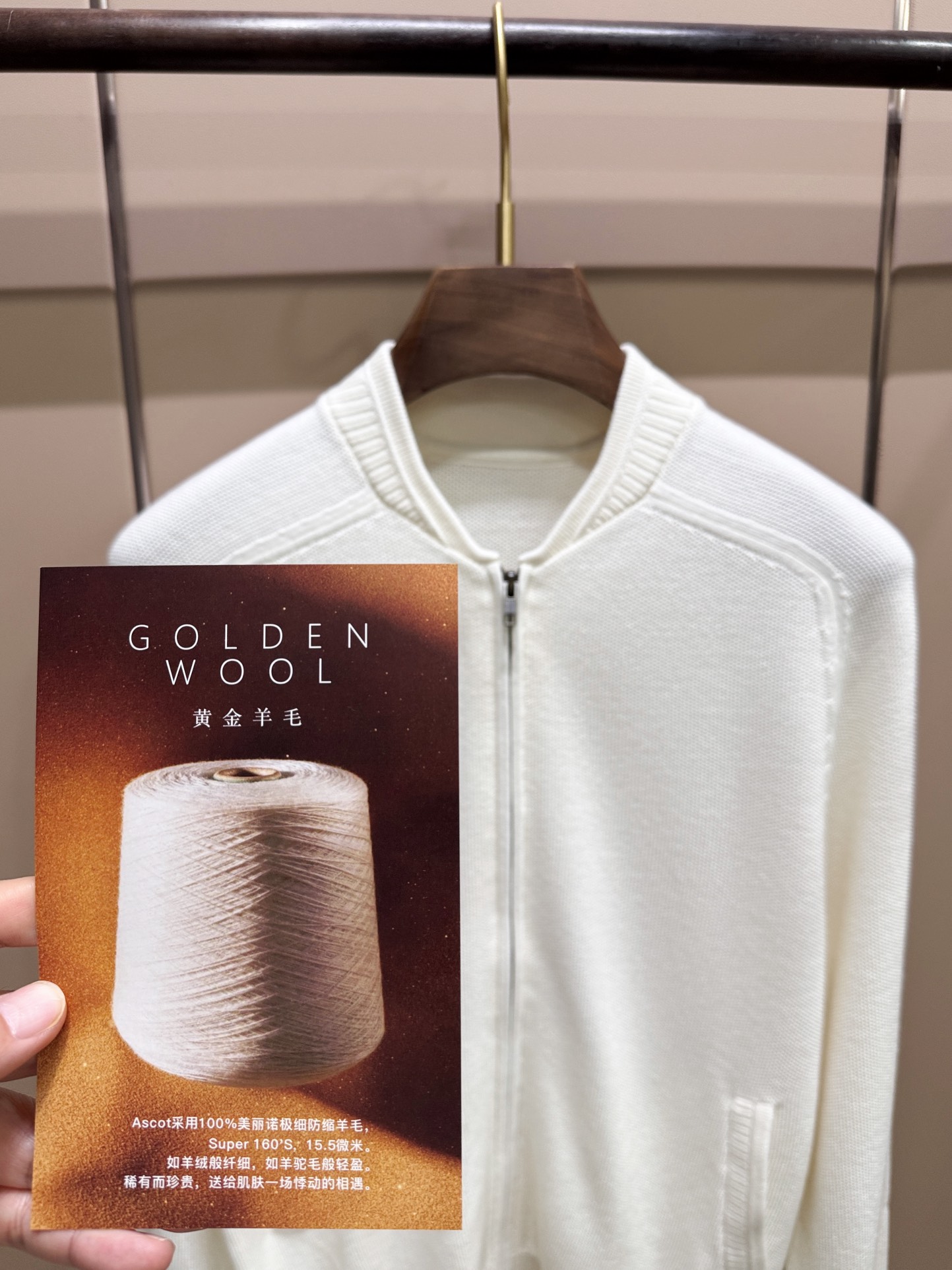 This golden wool jacket redefine luxury knitwear. Crafted from 15.5 micron golden wool yarn, this piece is a testament to quality and comfort.