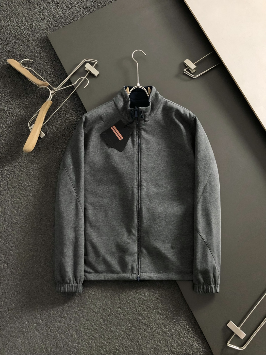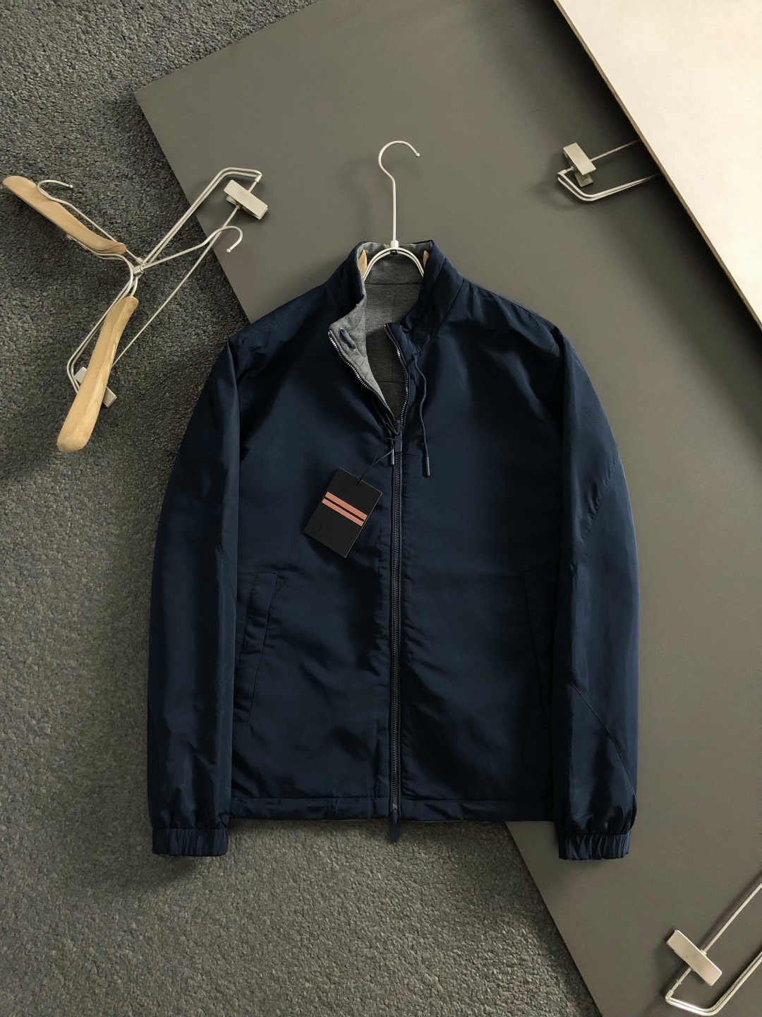 Tags: Blue Gray Jacket, Fashionable Menswear, Men Casual Jacket, Reversible jacket, Stand Collar Jacket, Trendy Menswear