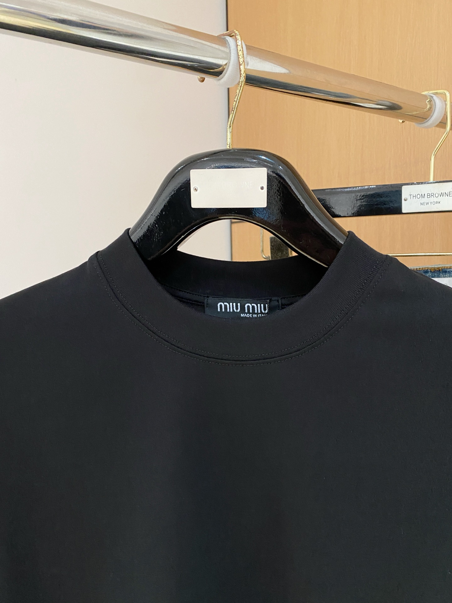 Tags: Black Round Neck T Shirt, Comfortable Long Sleeve Top, Long Sleeve T Shirt, Miu Miu T Shirt, Women's Designer T-Shirt
