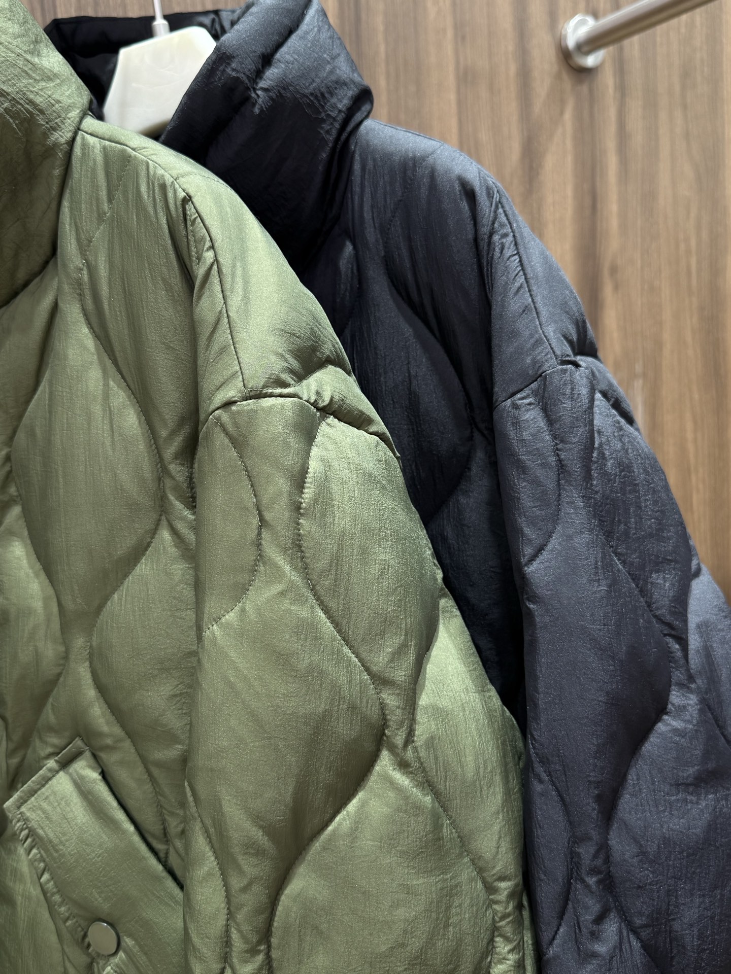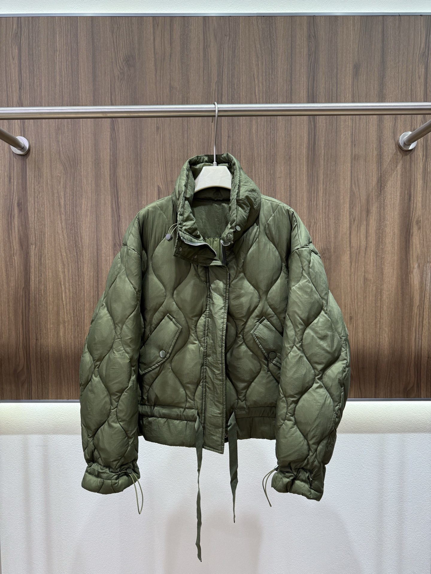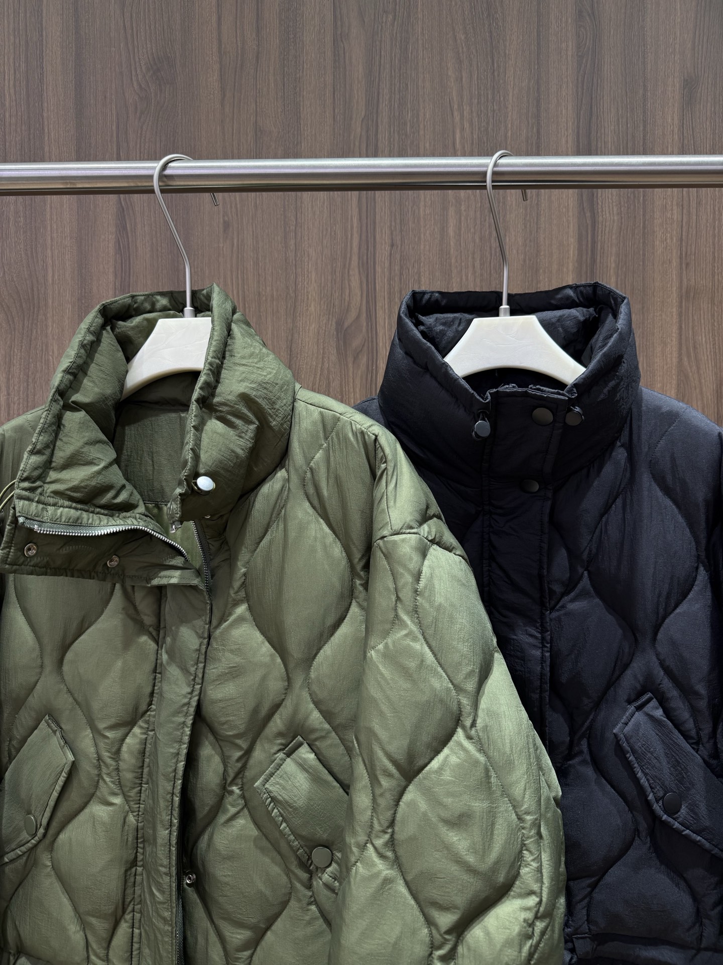 Tags: Diamond Quilted Jacket, Loose Fit Jacket, Quilted Down Jacket, Stand Collar Jacket, Winter Outerwear, Women Winter Coats