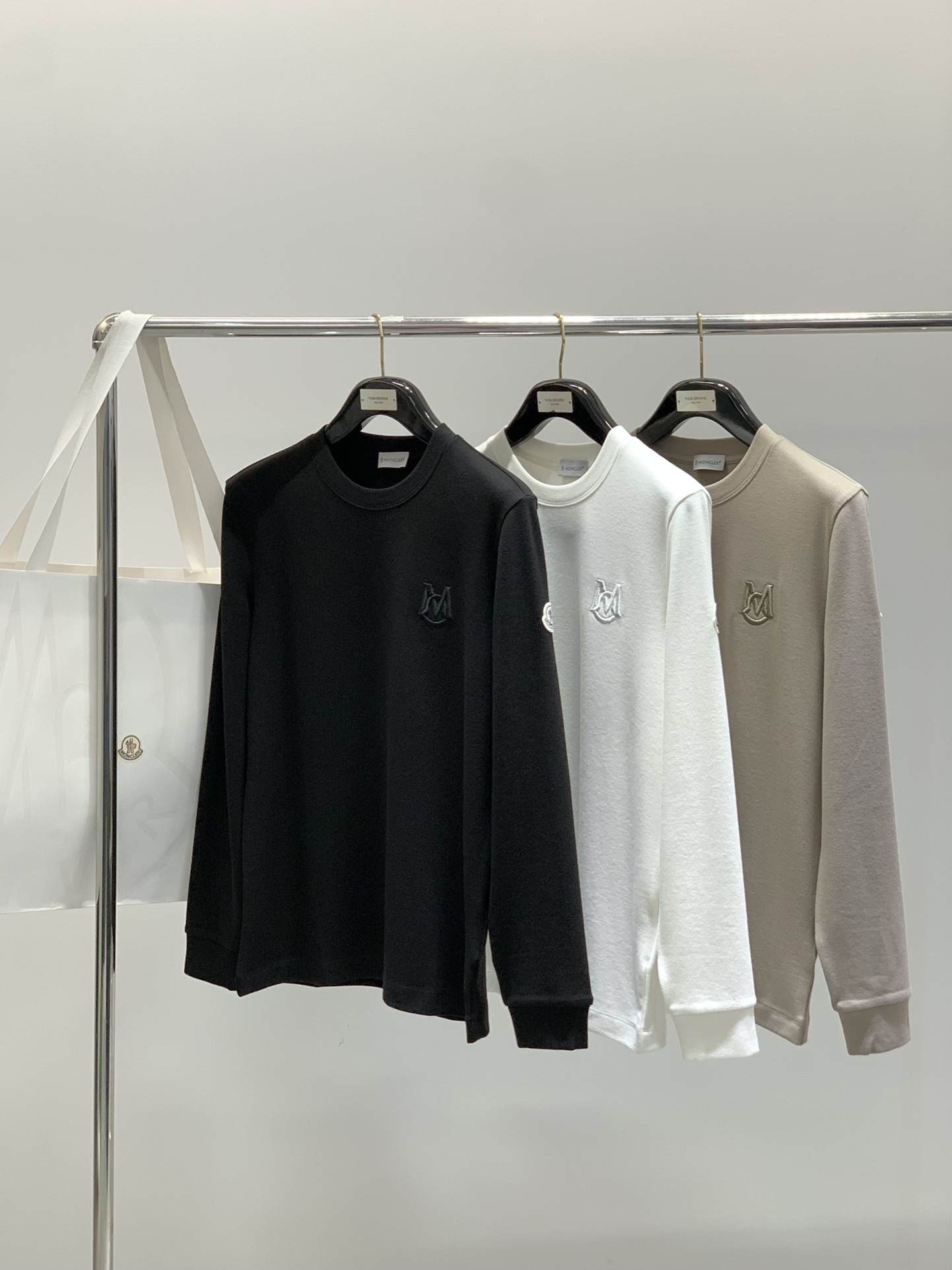 This Moncler long-sleeve T-shirt offers a blend of comfort and designer style, making it a versatile addition to any wardrobe.