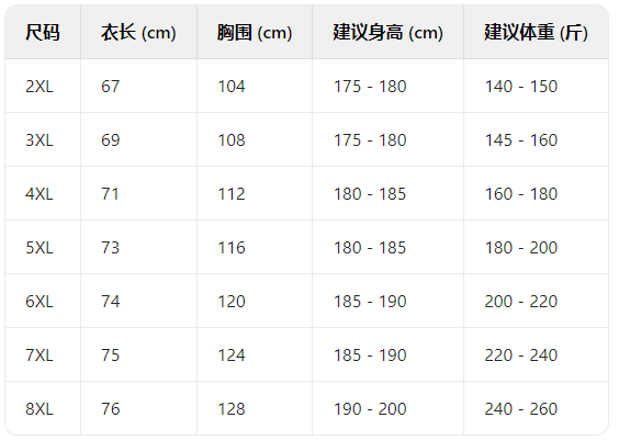 - Available Sizes: 2XL, 3XL, 4XL, 5XL, 6XL, 7XL, 8XL