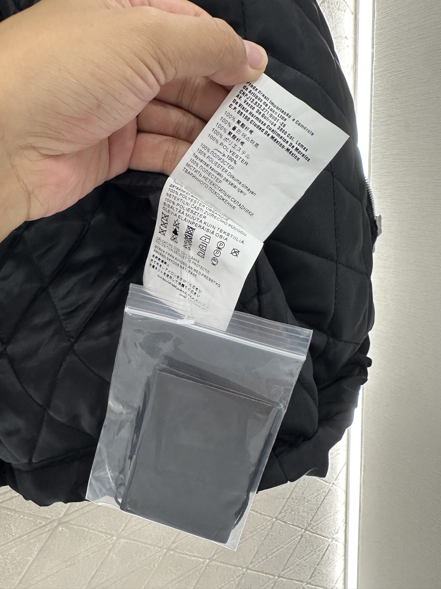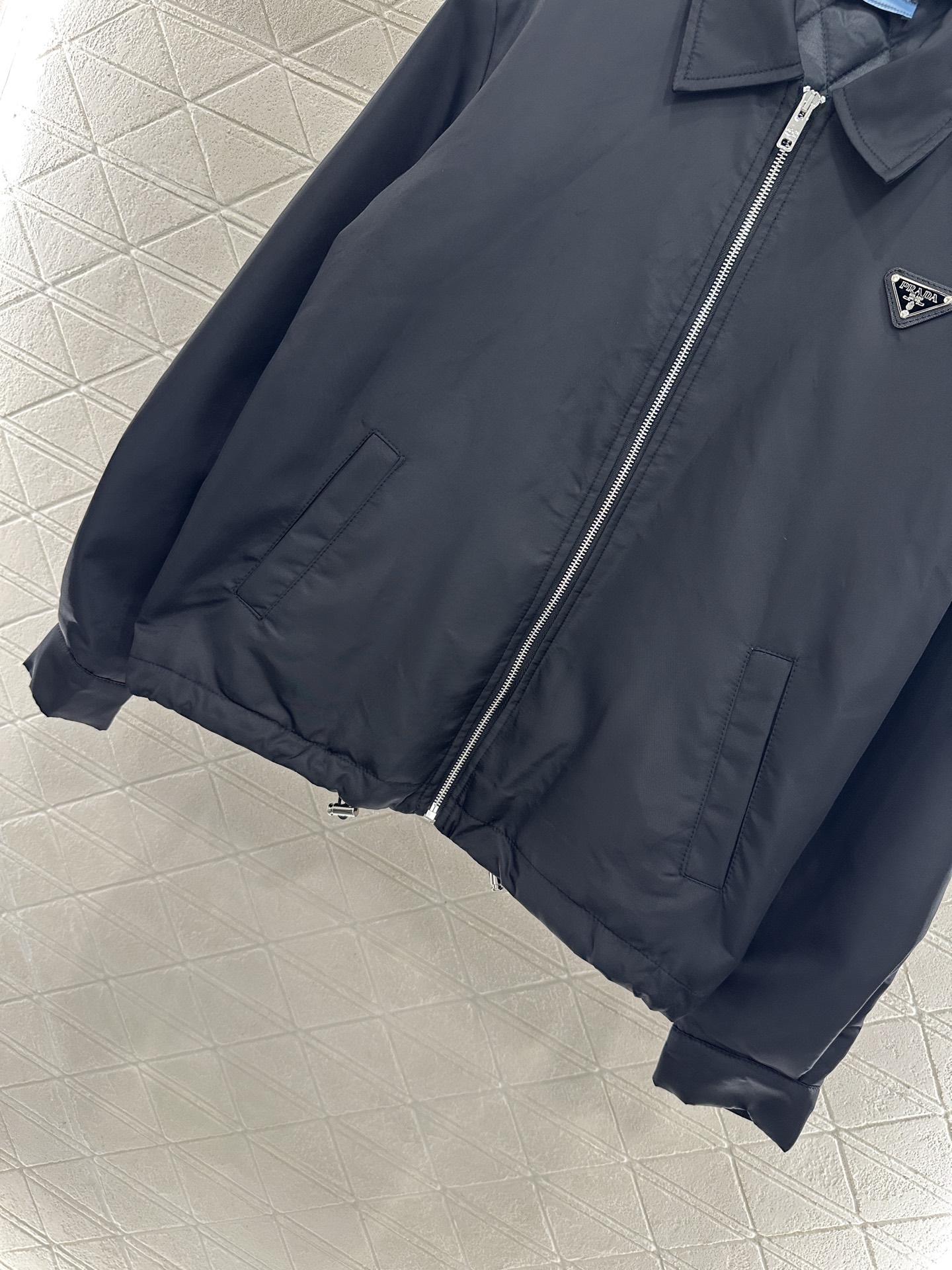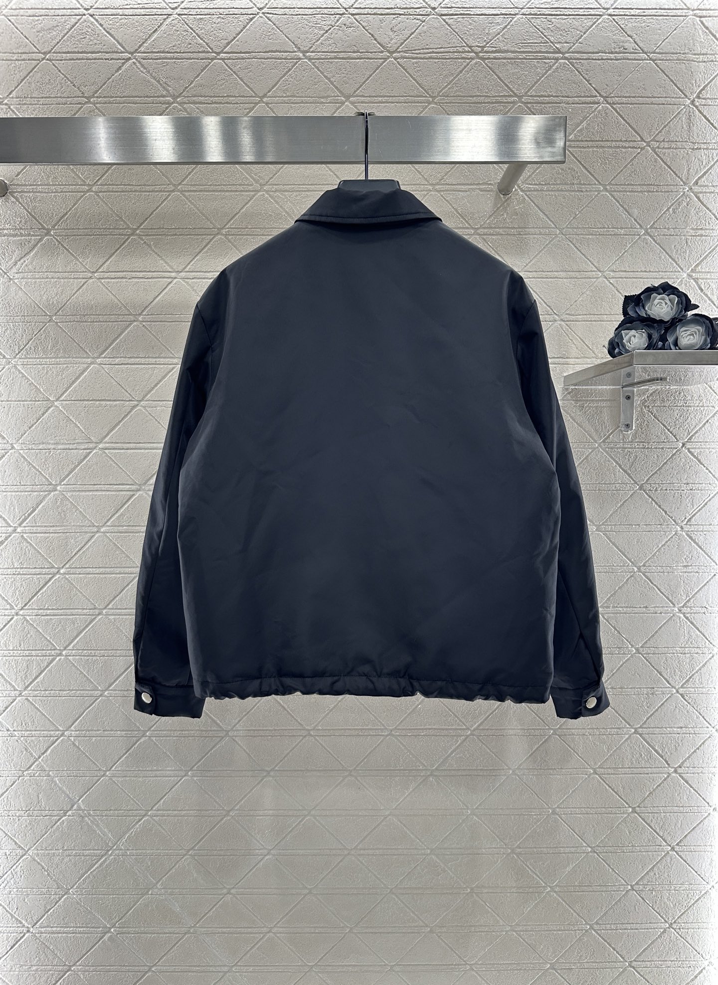 This Prada nylon jacket, a new arrival for 2025, showcases a blend of luxury and sustainability. Crafted from eco-friendly recycled nylon, this jacket offers a modern twist on classic outerwear.
