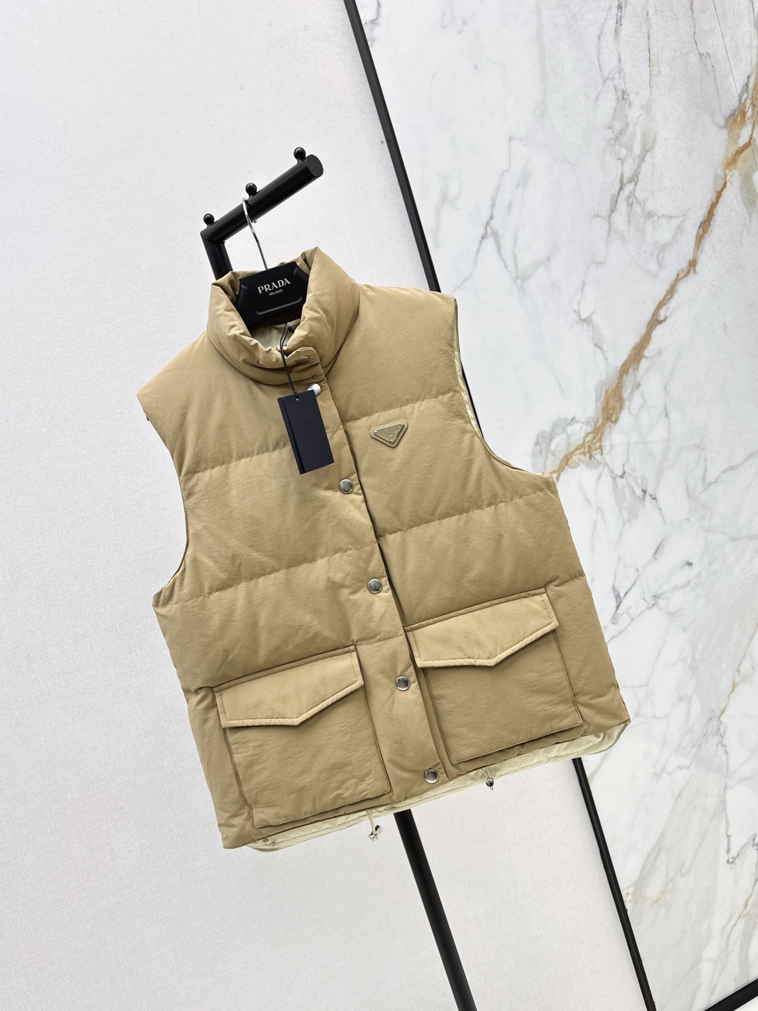 This Prada down vest is a stylish and practical addition to your wardrobe.Perfect for adding a layer of warmth without sacrificing style, this vest is sure to become a go-to piece.
