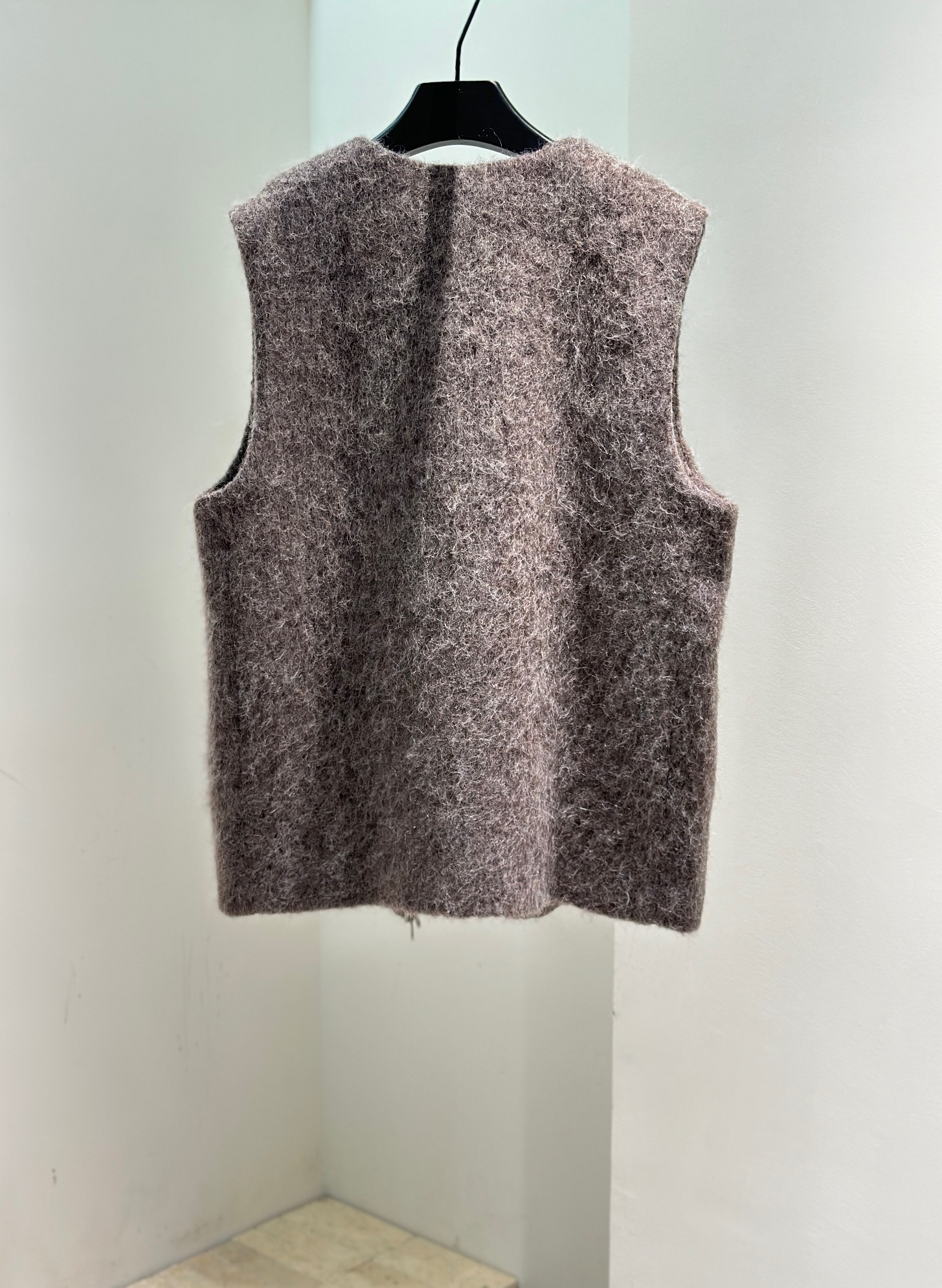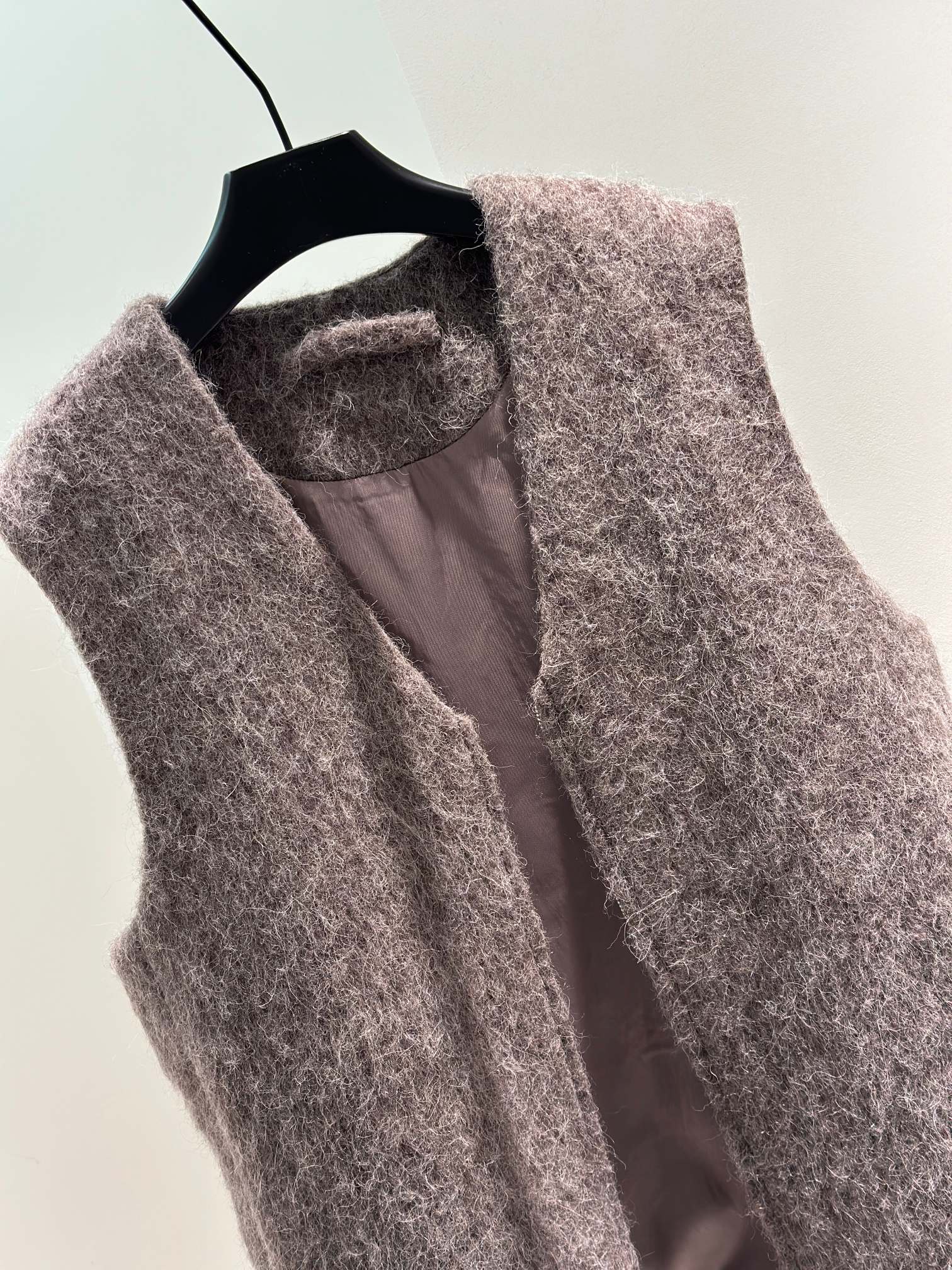 Tags: Invisible Pockets Vest, Long Hair Vest, Loose Fit Vest, Minimalist Vest, Sleeveless Long Hair Vest, V Neck Vest
