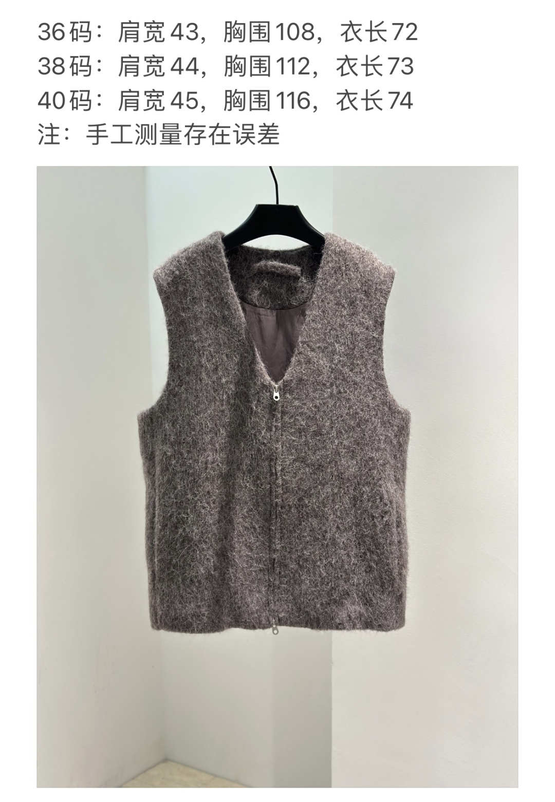This women's long hair vest features a minimalist low V-neck, a loose fit, and a double-headed zipper. It also has invisible pockets.